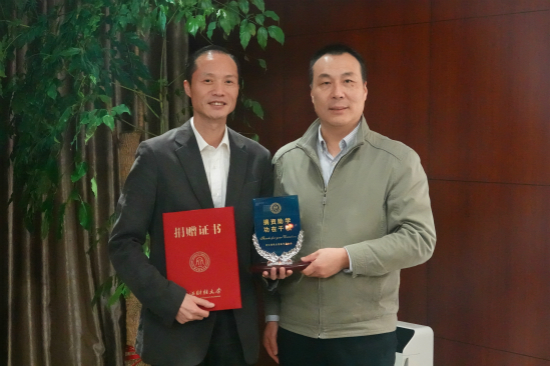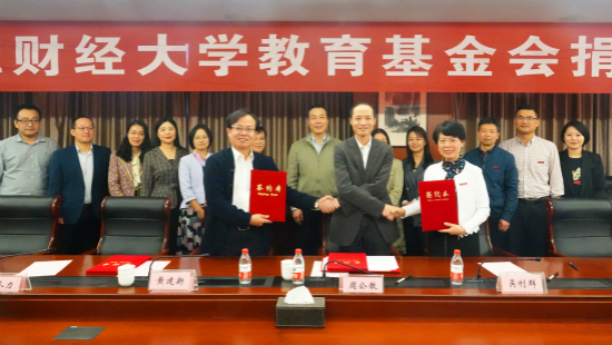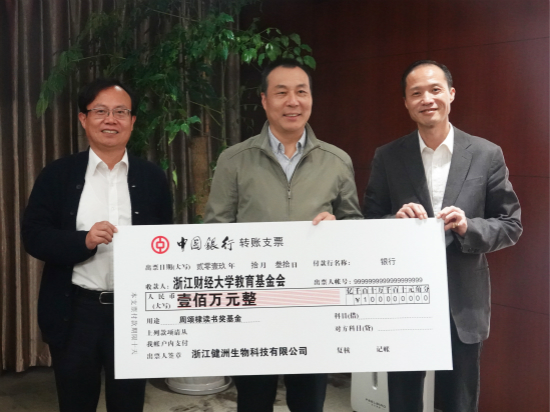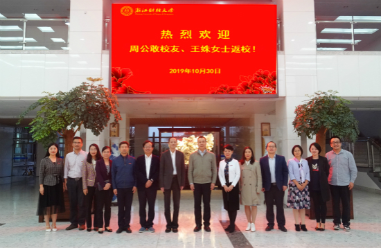 本网讯 10月30日,“周颂棣读书奖”基金成立暨周公敢先生捐赠仪式在我校下沙校区举行。浙江健洲生物控股董事长周公敢校友及其夫人王姝女士向学校捐资成立“周颂棣读书奖”基金。校党委书记、校友总会会长李金昌,党委副书记、校友总会副会长兼秘书长黄建新及相关职能部门负责人等参加捐赠仪式。