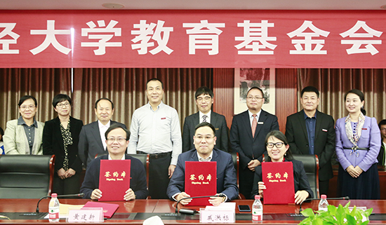 签约仪式上,戚洪标校友分别与黄建新和会计学院党委书记张红英签订了捐赠协议,李金昌向戚洪标校友颁发了捐赠证书和纪念杯,张红英接受了捐赠支票。