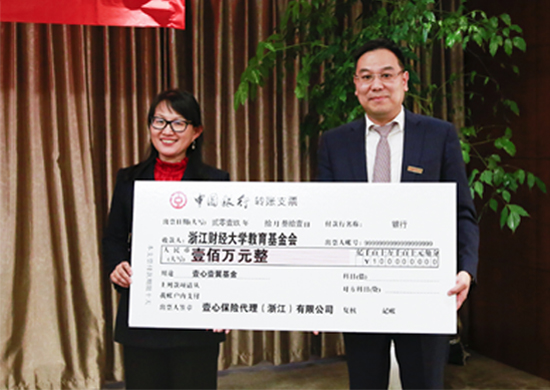 本网讯 10月31日,“壹心壹翼基金”捐赠签约仪式在我校下沙校区举行。北京壹心壹翼科技有限公司董事长兼CEO戚洪标校友向学校捐资成立“壹心壹翼基金”。校党委书记、校友总会会长李金昌,党委副书记、校友总会副会长兼秘书长黄建新,北京壹心壹翼科技有限公司副总裁张添荣,北京壹心壹翼科技有限公司财务总监张瑞及相关职能部门、学院负责人等出席签约仪式。