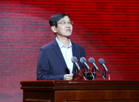 校党委书记李金昌致辞,他代表学校,向出席今天大会的各位嘉宾,向曾经在学校这块热土上辛勤耕耘的老领导、老同志,向热情关注、支持母校发展的历届校友代表表示最热烈的欢迎和衷心的感谢!