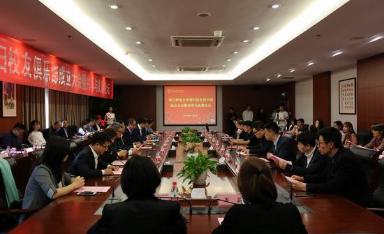 本网讯 11月2日,海归校友俱乐部成立大会在下沙校区举行。校友总会会长、党委书记李金昌,省侨联副主席张维仁,校友总会副会长兼秘书长、党委副书记黄建新,校留联会会长、校侨联主席傅黎瑛教授等出席大会。近40名在英国、美国、法国、瑞典、澳大利亚、香港等国(境)外有留学或工作经历的归国校友参加大会。