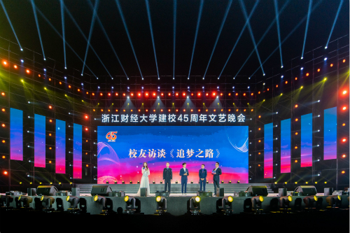 本网讯 11月2日晚,“卌五弦歌·逐梦远航”学校建校45周年文艺晚会在下沙校区举行。党委书记李金昌等全体校领导与学校师生及校友代表齐聚一堂,共同观看演出,同贺学校45周年校庆。