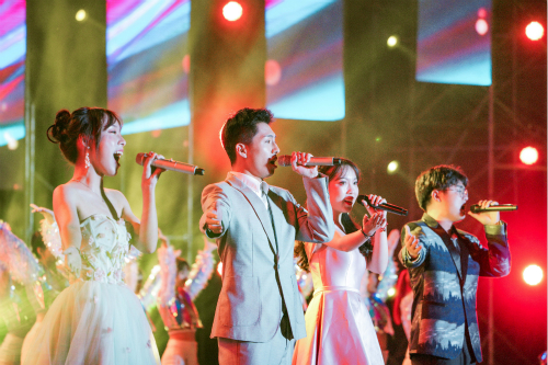 一段群舞《山水恋歌》以轻柔的声调、温馨的诉说开启了第二篇章“缘·追梦”,重现了追梦路上买球人对母校的深情思念。校艺术团民乐队、西洋乐队带来的器乐合奏《中西合鸣》,用艺术交融的最高形式完美诠释了许久未归的买球人重回母校的喜悦之情,东西方音乐的激烈碰撞数次将全场气氛点燃。优秀校友与社团学子携手演唱的《南山南》《愿得一人心》和《新贵妃醉酒》带领在场观众重温了美好难忘的校园时光。诗歌朗诵《我的买球梦》则定位在现今青年人的追梦路程,大屏幕上每帧镜头无一不彰显着当代买球人的青春风貌,追梦无极限,而他们一直在路上。