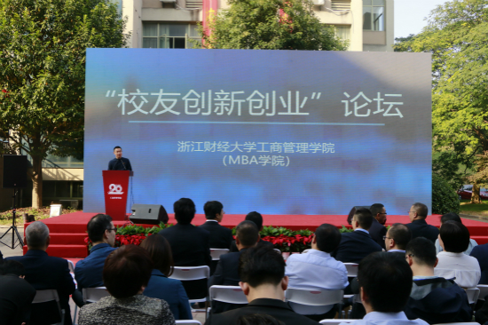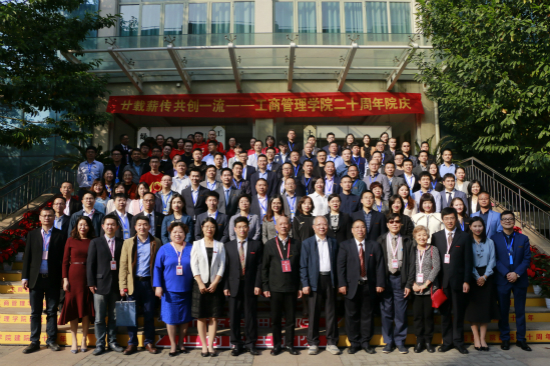 本网讯 11月2日,工商管理学院(MBA学院)举行建院二十周年庆典系列活动,来自五湖四海的工商学子齐聚一堂,喜迎母校四十五岁华诞,共襄工商二十周年盛典。原学校副校长李雷生,学院院长董进才、党委书记黄卫华,曾任学院领导的楼远、陈惠雄、尤利群,中美合作项目美方托莱多大学负责人安东尼,以及学院历届校友和在校师生代表等出席活动。