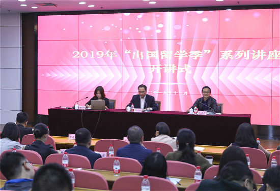 校留联会主席傅黎英教授作了本次系列讲座的首讲。她从留学趋势、留学国家优劣势对比和留学路径等方面给同学们进行了细致地分析与指导。
