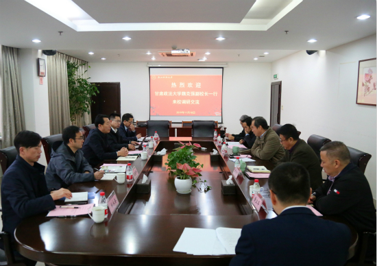 本网讯 11月18日,甘肃政法大学副校长魏克强、李卫海一行来校调研交流。副校长王奎泉、李占荣热情接待了来访客人。