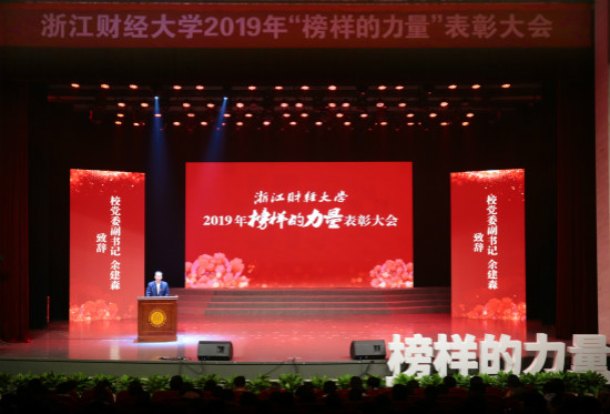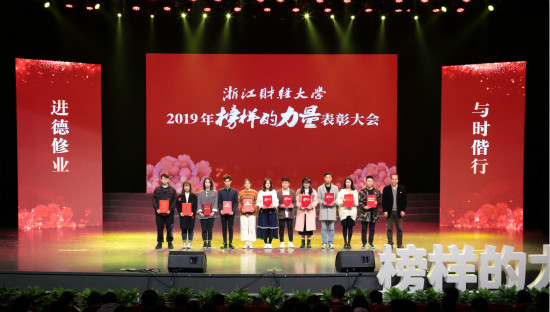 本网讯 12月12日,学校2019年“榜样的力量”表彰大会在下沙校区举行。校领导、相关职能部门负责人、各学院分管领导及获奖师生代表等1000余人出席大会。