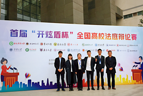 本网讯 12月15日,首届“开炫盾杯”全国高校法庭辩论赛在江南大学落下帷幕。由法学院管潇、李俊森、杨启杭、周子贻等同学组成的代表队,在王俊、王龙辉老师指导和带领下,从众多参赛高校中脱颖而出,夺得辩论赛文书赛一等奖。