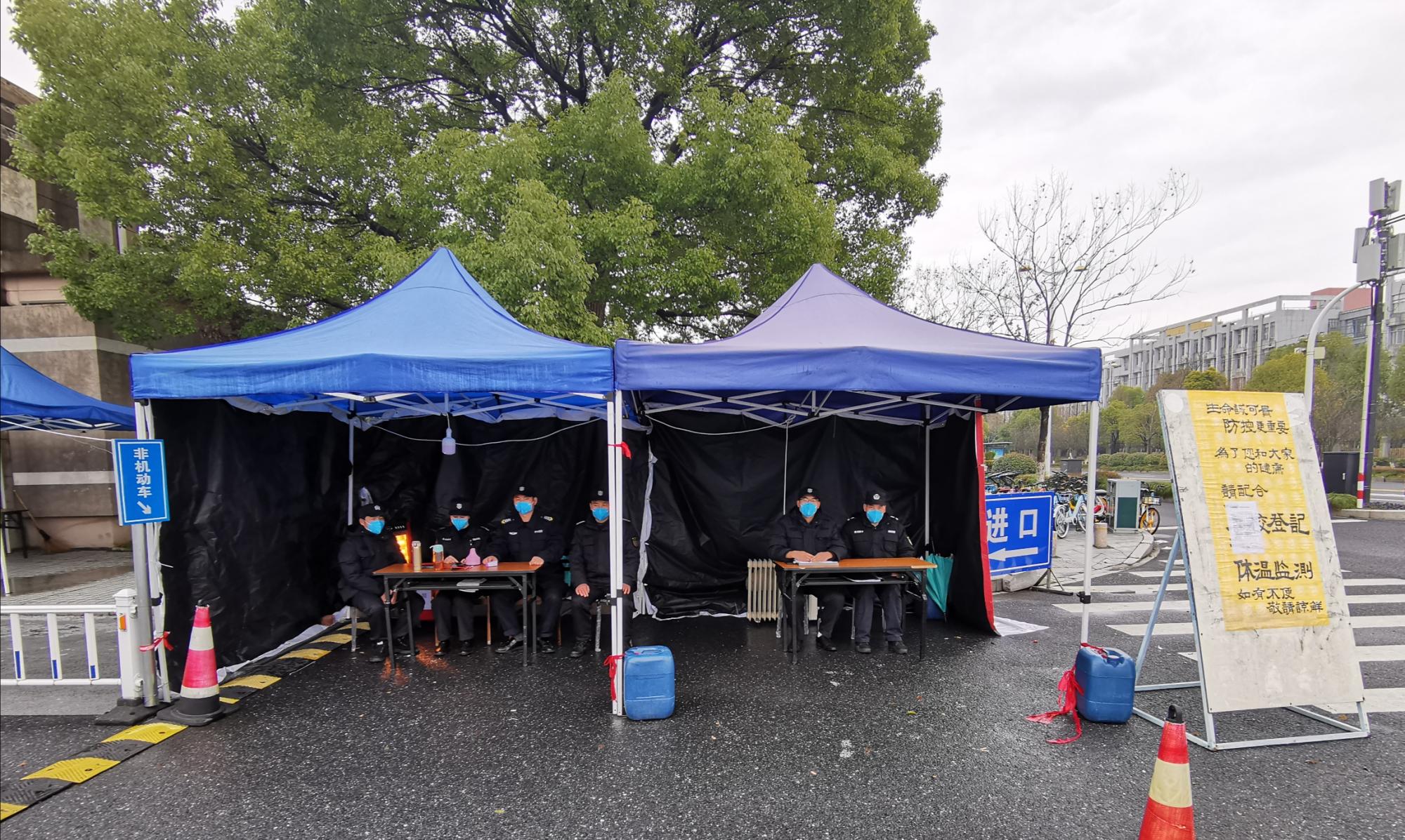 战“疫”一线,他们校警联动,确保安全。按照学校疫情防控的工作要求,加大校园安全防控力度,开展系列疫情防控工作部署,保卫处人员积极参与,加班加点,不辞辛苦,全力奋战在维护校园安全的值勤岗位上。自2月2日起校园封闭式管理以来,除疫情防控工作直接相关人员、值班人员、必要的服务保障和安保人员外,其他人一律禁止入校,严格落实24小时值班制度,坚持对进入校园的人员进行体温检测,对车辆信息进行核查登记,对校外无关人员和车辆进行现场劝阻、劝离,筑牢一道牢固的安全隔离防线。与此同时,根据属地派出所要求,及时转发公安发布的涉疫情的网络诈骗等信息,提醒广大师生时刻关注疫情动态并做好科学防护,共同配合学校落实好疫情防控的各项要求。战“疫”一线,他们校警联动,落实保障。