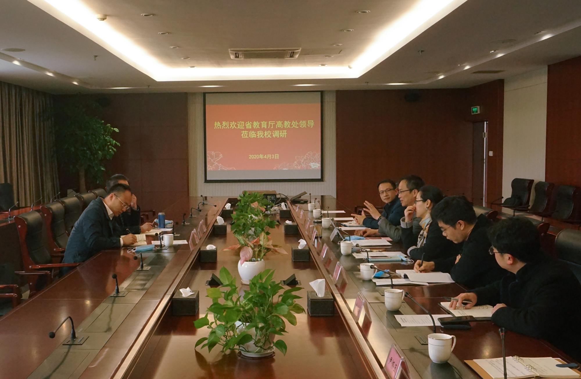 本网讯 4月3日,省教育厅高教处副处长廖波、周武汉一行来校调研就业创业工作。校党委副书记余建森会见了来访客人。学生处、创业学院等负责人参加座谈交流。
