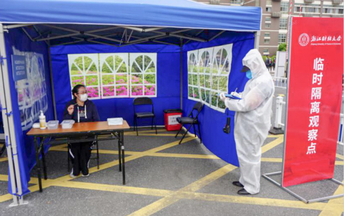 学生由专车送达校园集中居家观察点后,进入隔离程序。人员离开后,进行现场消杀。