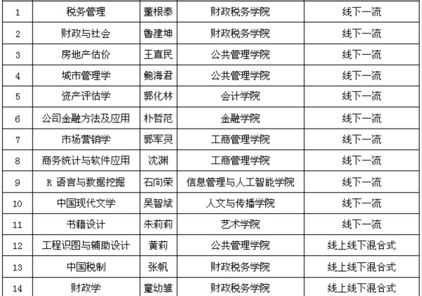 附2019年学校省级精品在线开放课程和省级线下、线上线下混合式、社会实践一流课程认定名单