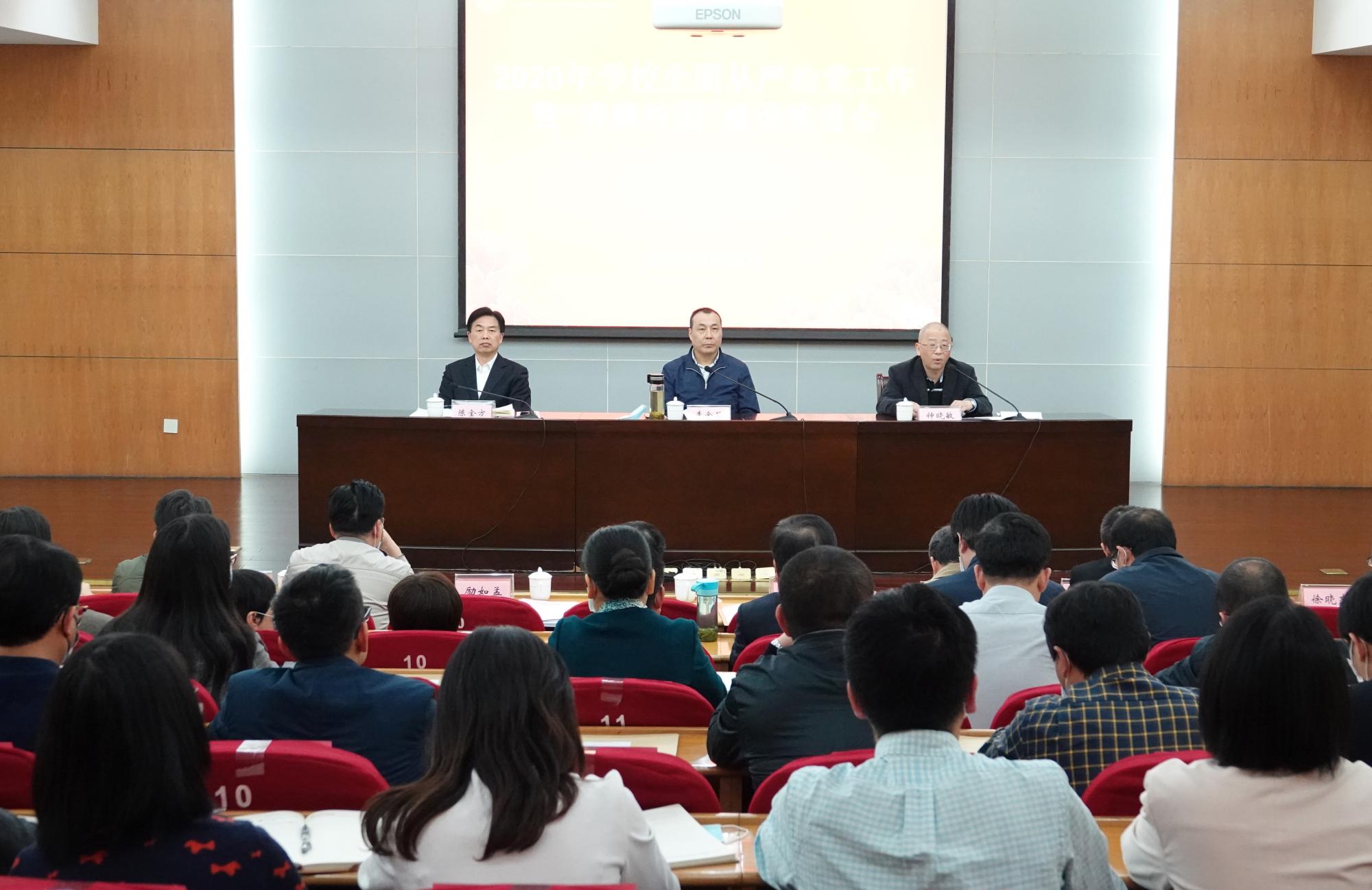 本网讯 4月28日,学校召开2020年全面从严治党工作暨“清廉校园”建设推进会。校党委书记李金昌主持会议并讲话。校领导班子成员、校纪委委员、各二级单位党政主要负责人、二级纪委书记、民主党派负责人等参加会议。