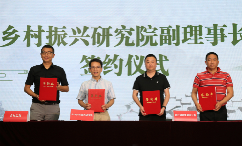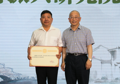 钟晓敏为中国乡村振兴研究院首席顾问陈剑平、名誉院长温铁军及乡村实践导师、义乌市城西街道何斯路村党支部书记何允辉颁发了聘任证书。