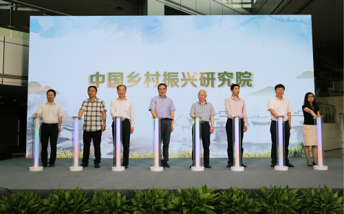陈剑平、温铁军、钟晓敏、李占荣、江丕贤及钱塘新区农业发展服务中心主任沈水良、省教育厅高教处副处长王国银、省农业农村厅宣传中心副主任孙燕勤共同为研究院揭牌。