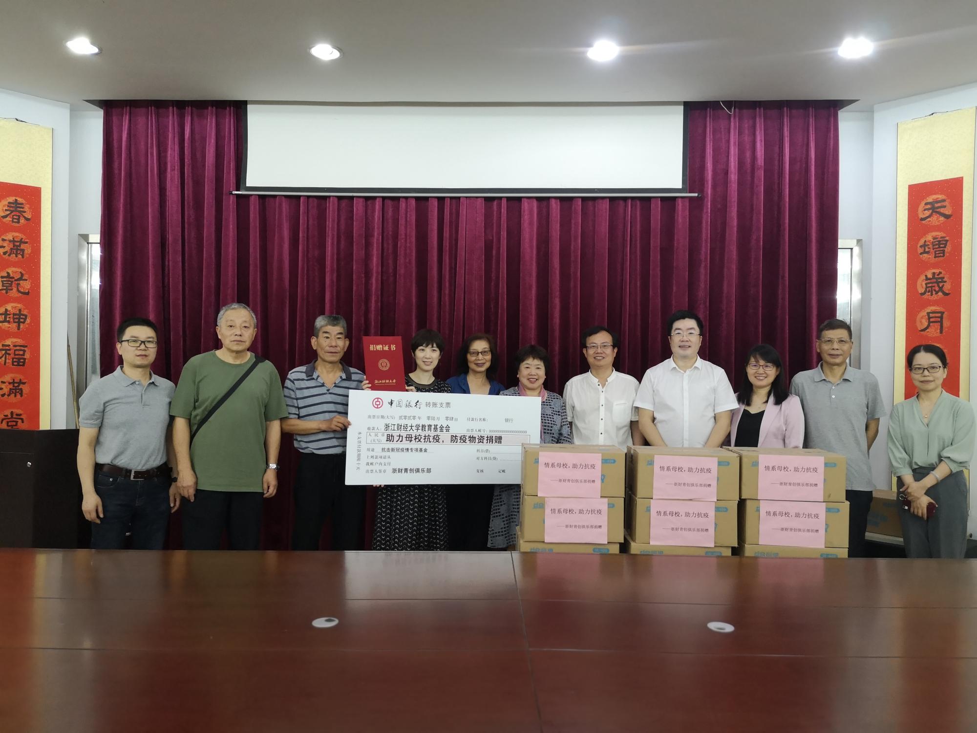 本网讯 6月4日,校友青年创业者俱乐部向离退休老同志捐赠防疫物资。校党委副书记、校友总会副会长兼秘书长黄建新,浙银互联执行董事创始人、校友青年创业者俱乐部轮值主席王思立校友,浙江六和律师事务所合伙人、校友青年创业者俱乐部主席杨甜校友和离退休老同志代表出席捐赠仪式。