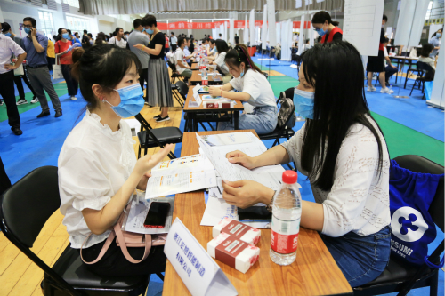 本次招聘会采用限定用人单位个数、毕业生限时分流、一人一票、分段进场等方式,共吸引了中国人保、浙商期货、娃哈哈集团、杭州城投、湖州银行等近百家知名企业参会。其中,国有企业25家、银行12家、保险公司6家、证券公司8家、期货公司6家,共计提供岗位近2000个,招聘专业覆盖学校所有专业,现场约500余人达成初步就业意向。