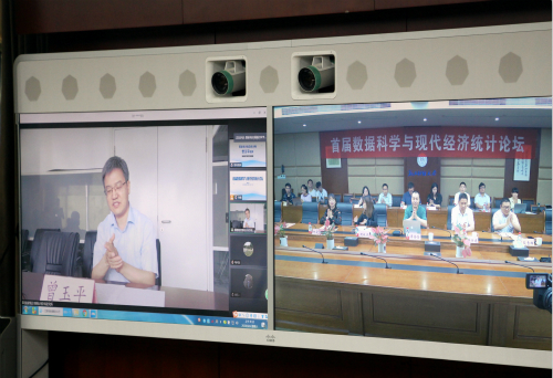 本网讯 6月6日,首届数据科学与现代经济统计论坛在我校召开。本届论坛采用远程在线直播的形式,主会场设在下沙校区。来自国家统计局和清华大学、北京大学、厦门大学、上海财经大学等高校的专家学者齐聚“云端”,围绕“数据科学与现代经济统计”这一主题展开了广泛而热烈的研讨。