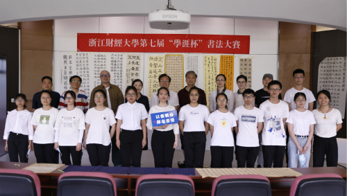 本网讯 6月9日,以“以艺战疫 挥毫书情”为主题的第七届“学涯杯”书法大赛在我校下沙校区举行。校党委副书记黄建新,省书协学术委员会副主任黄齐辉,书法家徐文平、王水泓、王业、程惠池等出席并担任评委。