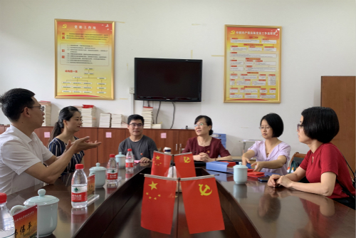 黄建新代表学校对冯尚申一行的到来表示欢迎,并介绍了学校的基本情况。徐晓东介绍了学校落实《高校院(系)单位党组织建设标准(试行)》和《高校基层党支部建设标准(试行)》相关情况。