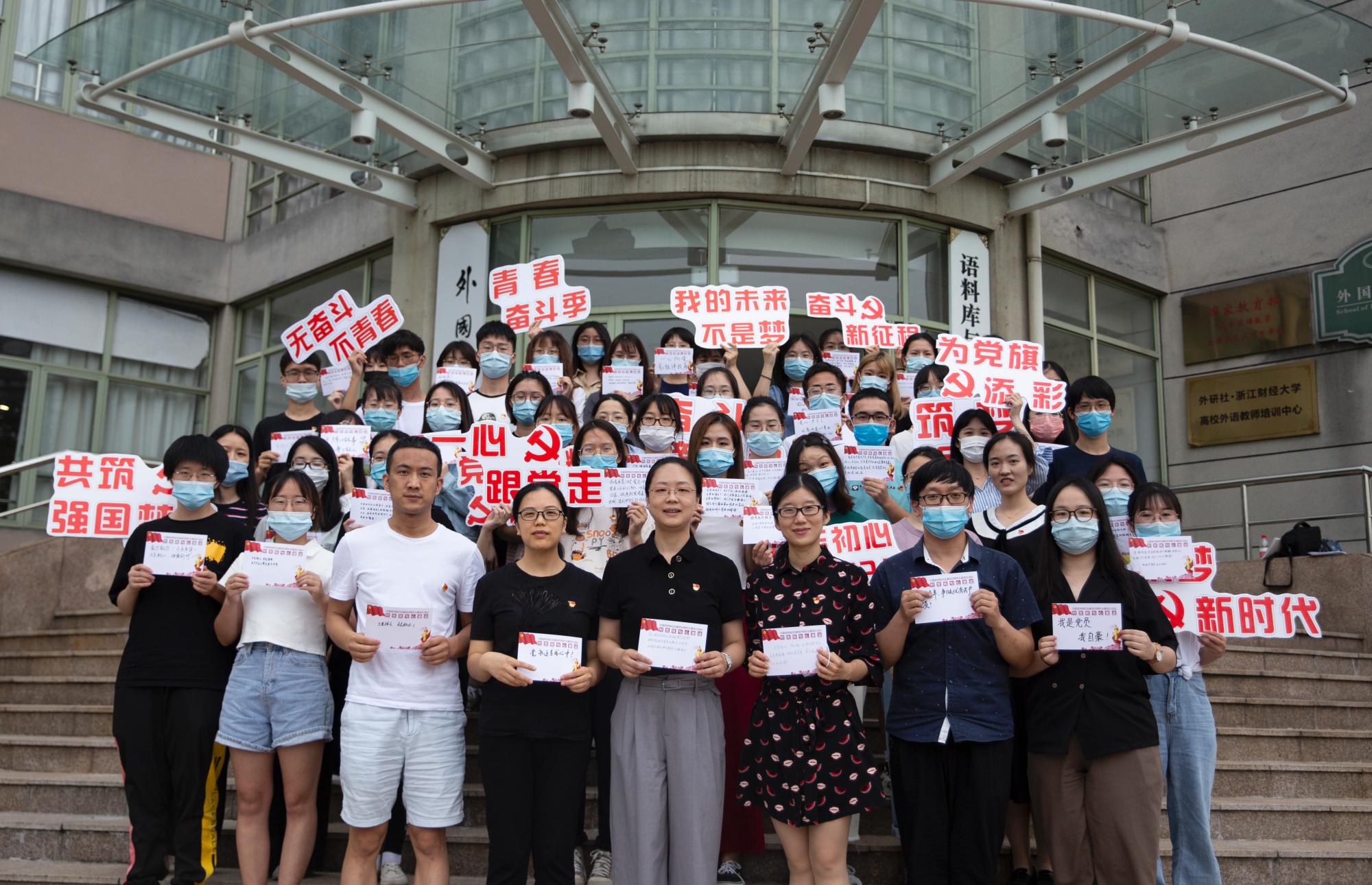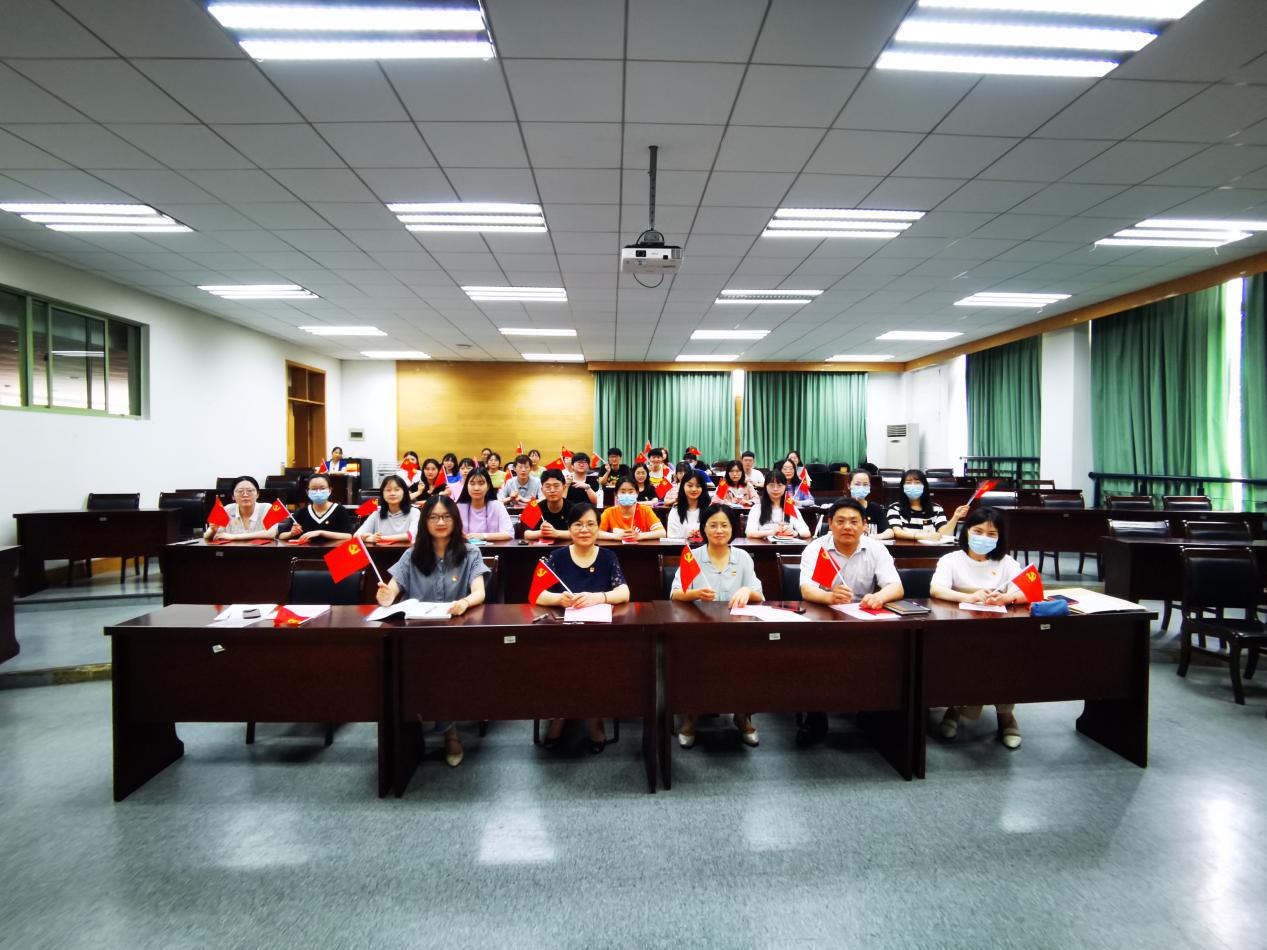 外国语学院党委举行“党旗飘扬 青春红动 点赞中国”——庆祝建党99周年主题党日活动,听取专题党课,举行入党誓词,开展党性教育。