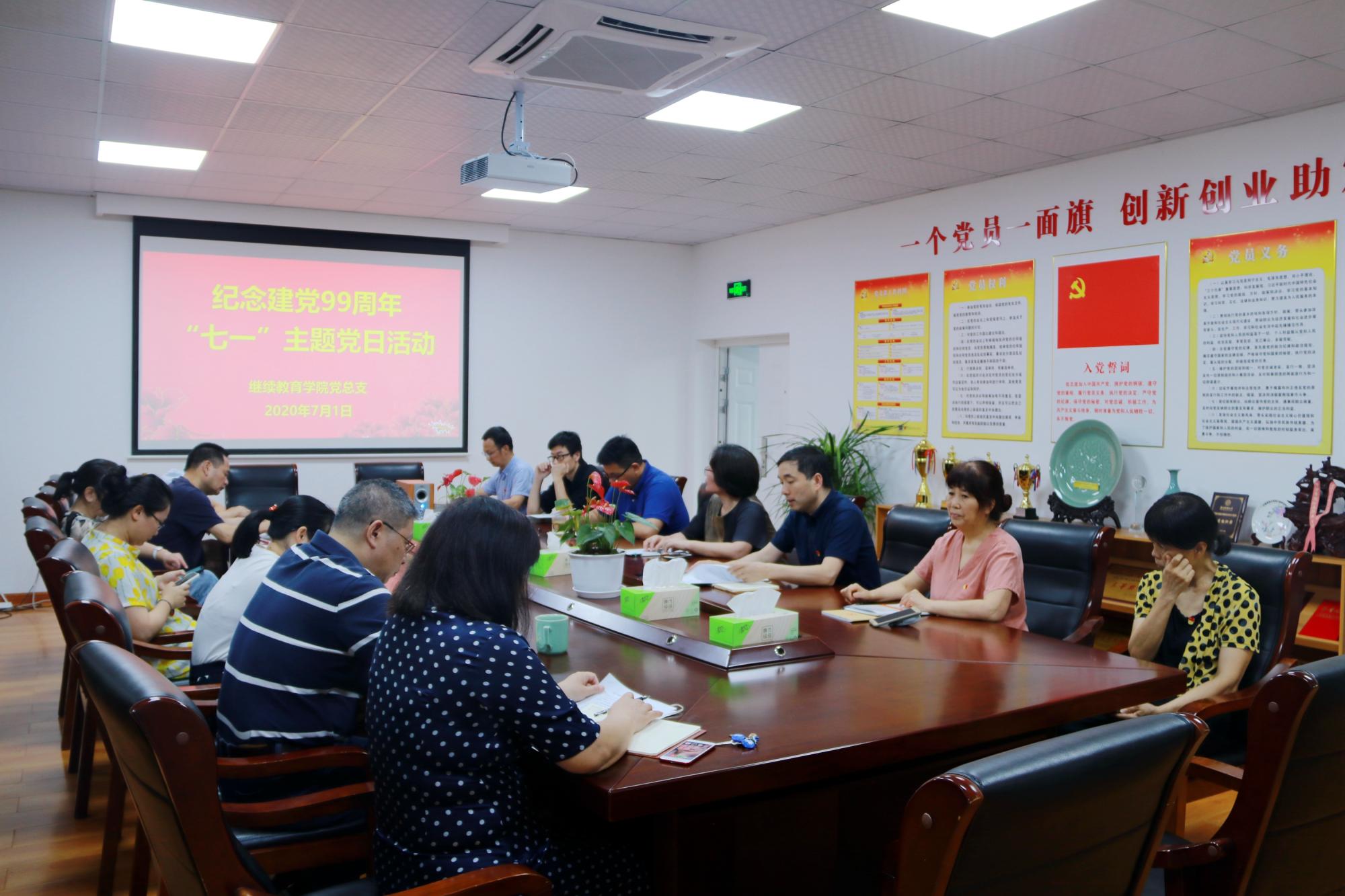 继续教育学院党总支举行“七一”主题党日活动,全体党员观“云”汇演,重温入党誓词,听战“疫”微党课,悟初心使命,过集体政治生日。