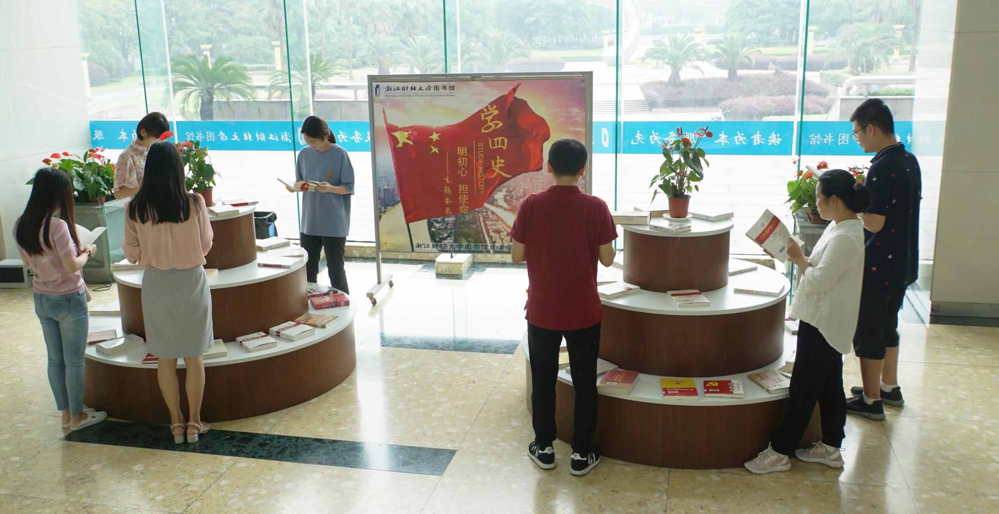 图书馆党总支举办“读四史、明初心、担使命”主题书展,通过对馆藏纸本“四史”相关图书的检索和整理,及时购入新出版的“四史”书籍,供师生取阅。