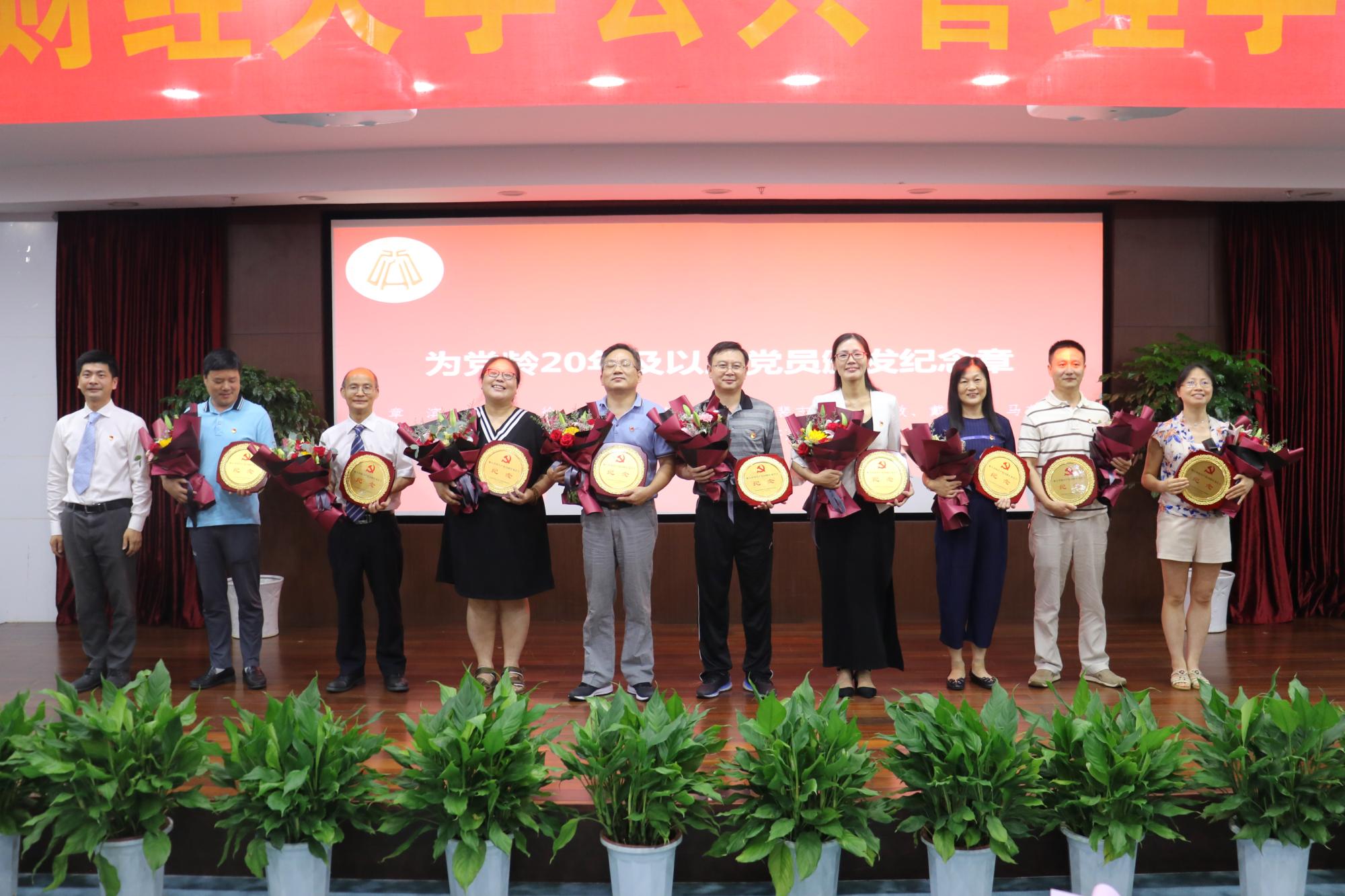 公共管理学院党委在庆祝建党99周年主题党日活动中表彰了浙江省高校优秀教师、新时代浙江省“万名好党员”等优秀党员代表,并向20年及以上党龄教工党员颁发纪念章,一起向老党员们致敬。