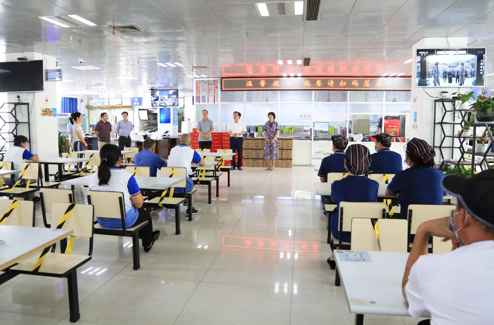 校领导仔细询问了在岗教职工暑期的工作和生活情况,对大家战高温守岗位的高度责任心和敬业精神予以赞扬,向一直以来奋战在学校疫情防控一线的工作人员表示慰问和感谢。同时要求各部门要做好防暑降温工作,确保教职工们以健康的身体和饱满的精神投入到工作中去。
