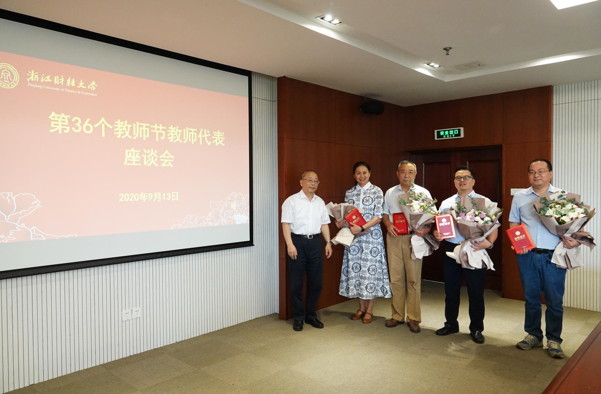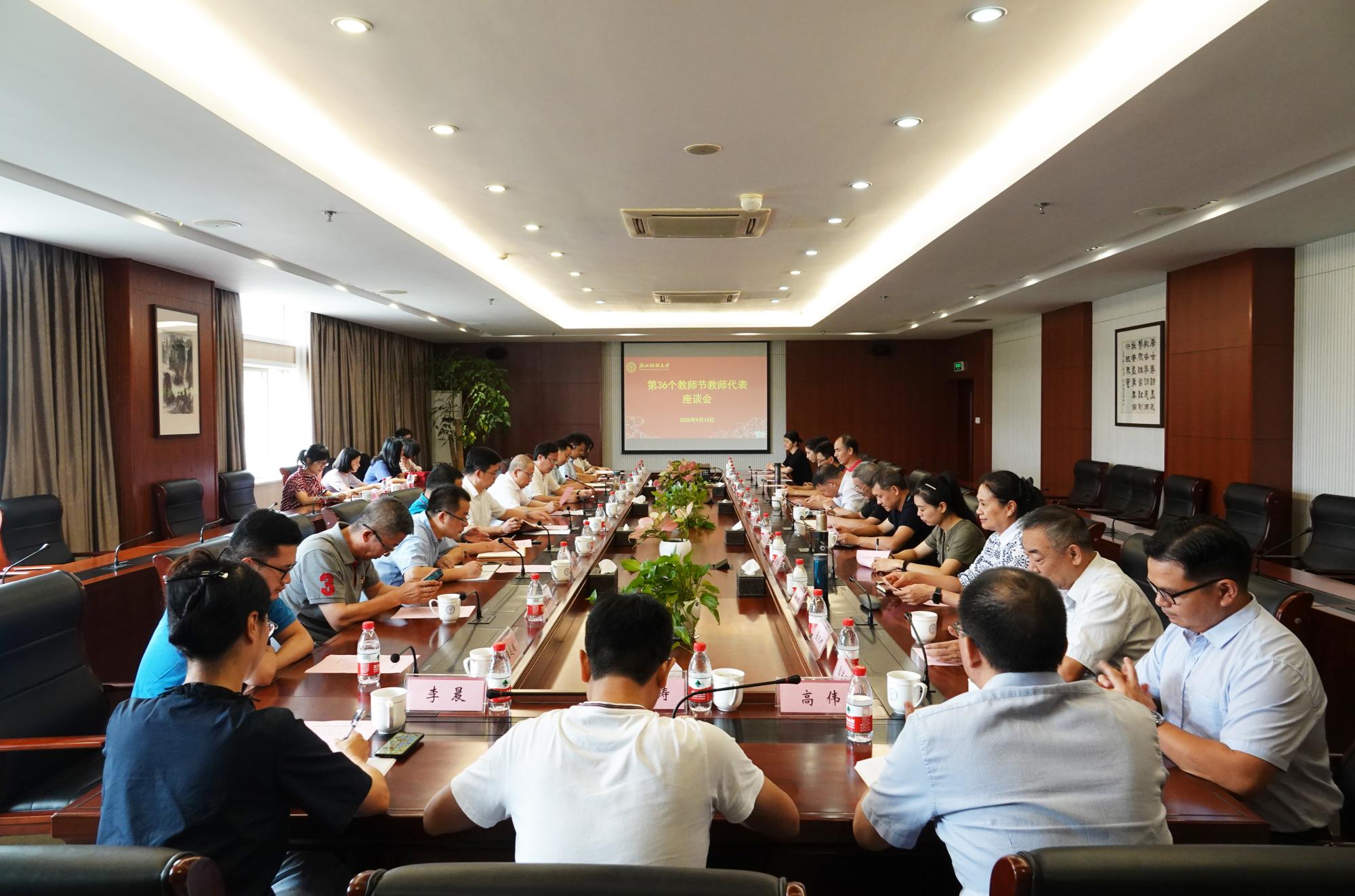 本网讯 9月13日,学校召开第36个教师节座谈会暨优秀教师表彰会。校领导钟晓敏、黄建新、董进才、楼胆群,相关职能部门负责人及优秀教师代表等参加会议。会议由校党委副书记黄建新主持。