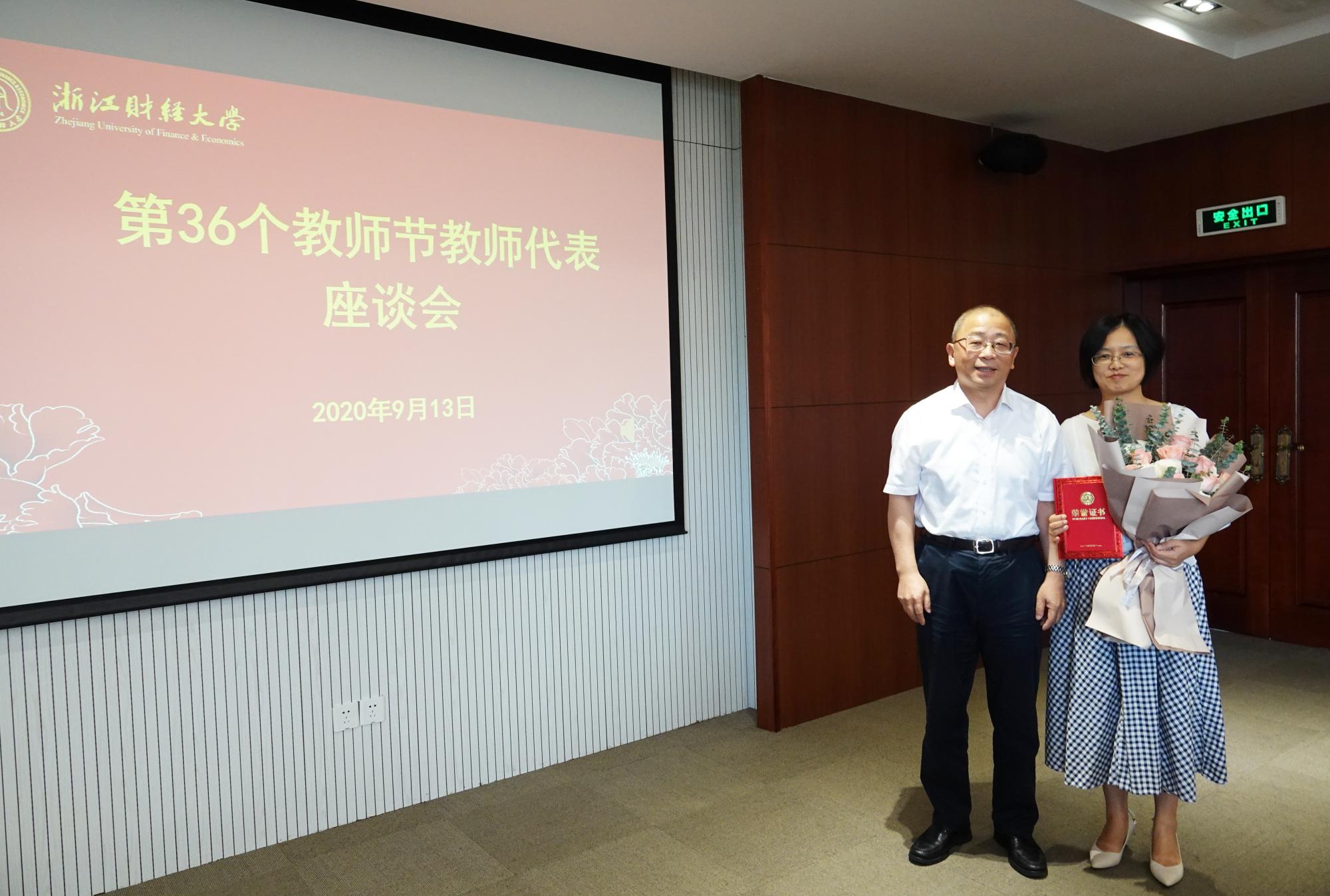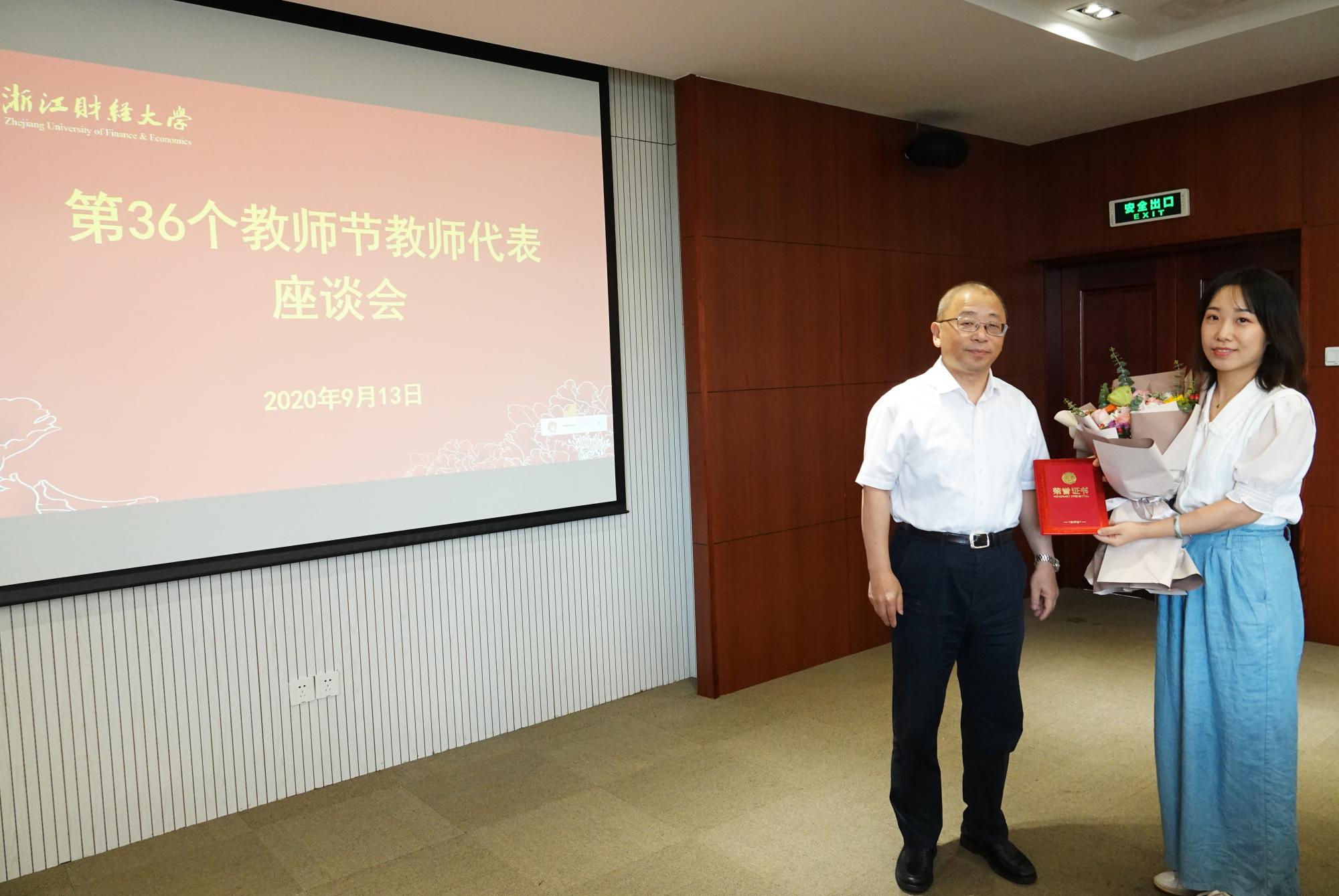校党委委员、宣传部部长楼胆群向优秀教师代表献花