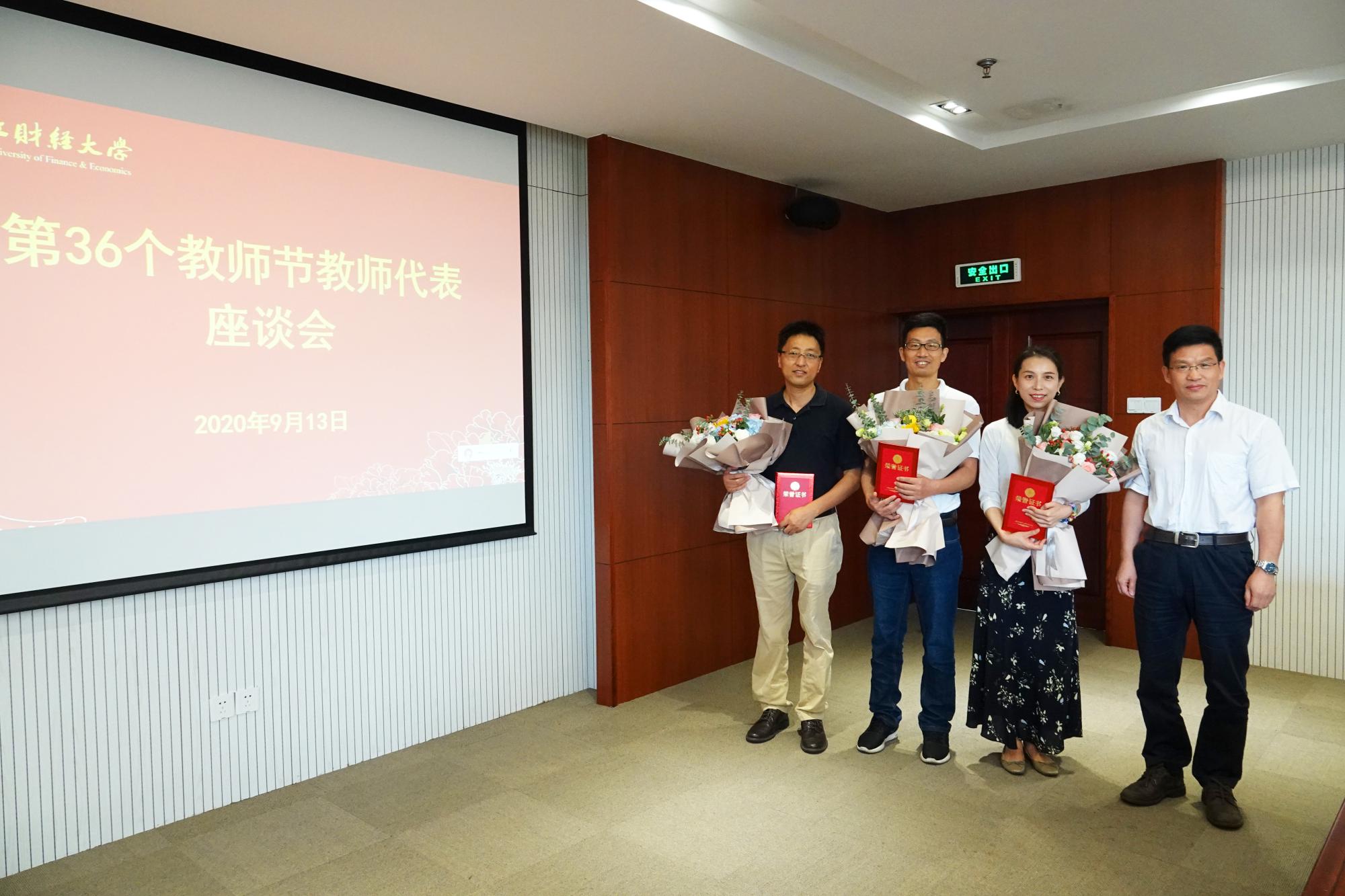 这次受表彰的先进集体和个人包括:省“三育人”岗位建功先进集体:财税学院;省“三育人”岗位建功二等奖及先进个人代表:孔飞燕(外语学院)、张文宇(信智学院);省高校辅导员年度人物提名奖获得者:赵聪(法学院);校教学突出贡献奖及提名奖获得者:邹洁(数科学院)、郭军灵(工商学院)、崔大树(经济学院)、高伟(马院);任教30年教师代表:王序坤(财税学院)、张哲(经济学院)、余慕鸿(国际学院);校风华奖获得者代表:沈云娟(计财处);优秀教师代表:赵宇恒(会计学院)、钟立新(金融学院)、孙德平(人文学院)、徐文平(艺术学院)、李敬辉(体育部)、崔远政(地研院)、李晨(后勤服务中心)、李永涛(财税学院)等等。