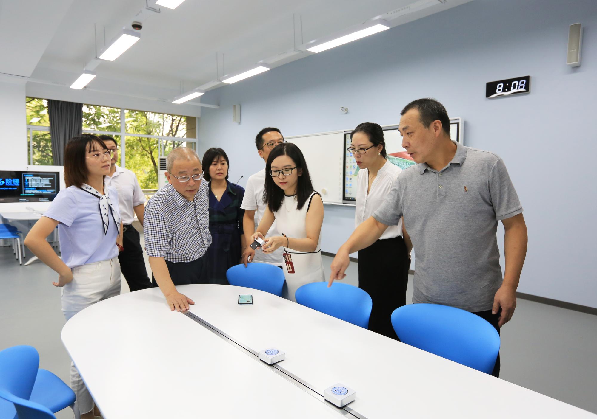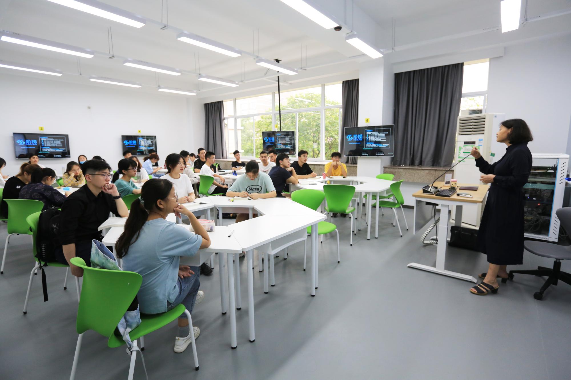 暑假期间,学校对学博楼传统多媒体教室进行升级改造,共建设了16间基于互联网、物联网技术,集智慧教学、人员考勤、环境智慧调控及远程控制于一体的新型现代化智慧教学空间,涵盖交互增强、灵动探究、TBL研讨、多视窗等多种类型,进一步推动了现代信息技术与教育教学深度融合。