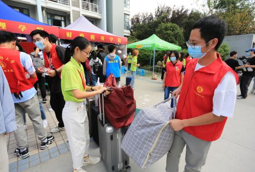 今年每位新生都能领取到一件印有校训的独特文化衫。来自山东的新生陈佳怡直言:“收到印有学校logo的衣服!让我有种正式加入了买球大家庭的感觉。我会好好保存着!”“尽管今年如此艰难,我们经历了疫情爆发、高考延期等种种困难,但是来到买球还是让我心头一热,工作人员暖心到让我有一种回家的感觉”,来自甘肃的新生冯巧说。