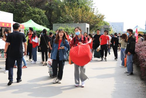 在园区,身着红色马甲的志愿者们格外引人注目。他们精神抖擞、充满热情,负责帮助新生搬运行李并引导办理报到流程。来自新疆的新生刘畅感慨到:“走进园区,就有志愿者接过行李,一直送到宿舍真是‘一条龙’服务。”2019级公共管理学院的王一是志愿者中的一员,他表示,从新生身上仿佛看到了去年的自己。在疫情防控的特殊时期,我更想尽自己的一份力去帮助他们。