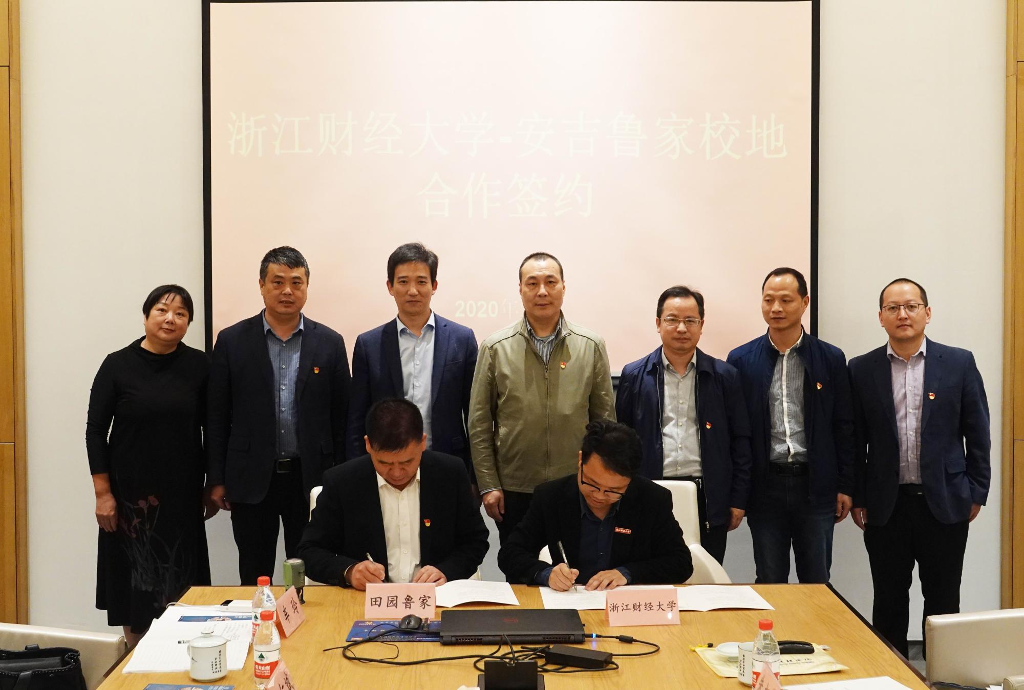 本网讯 10月22日,学校与安吉县鲁家村举行校地合作签约授牌仪式,共建“三地一窗口”思政教学与研究基地。校党委书记李金昌,党委委员、宣传部部长楼胆群,安吉县递铺街道党委副书记周方平、街道办事处副主任杨绍兴,安吉县市场监管局副局长、鲁家村第一书记周春雨,鲁家村村党委书记朱仁斌、村主任裘丽琴及我校党校办、马克思主义学院负责人等出席签约授牌仪式。