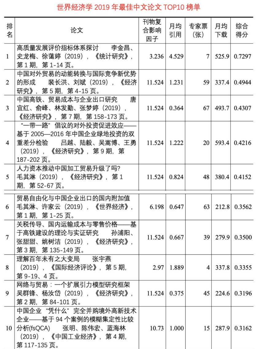 本网讯 近日,《世界经济年鉴》期刊公布了世界经济学2019年最佳论文TOP10榜单,我校李金昌教授在《统计研究》2019年第1期发表的论文《高质量发展评价指标体系探讨》入选“世界经济学2019年最佳中文论文TOP10”榜单,并位列该榜单第1位。