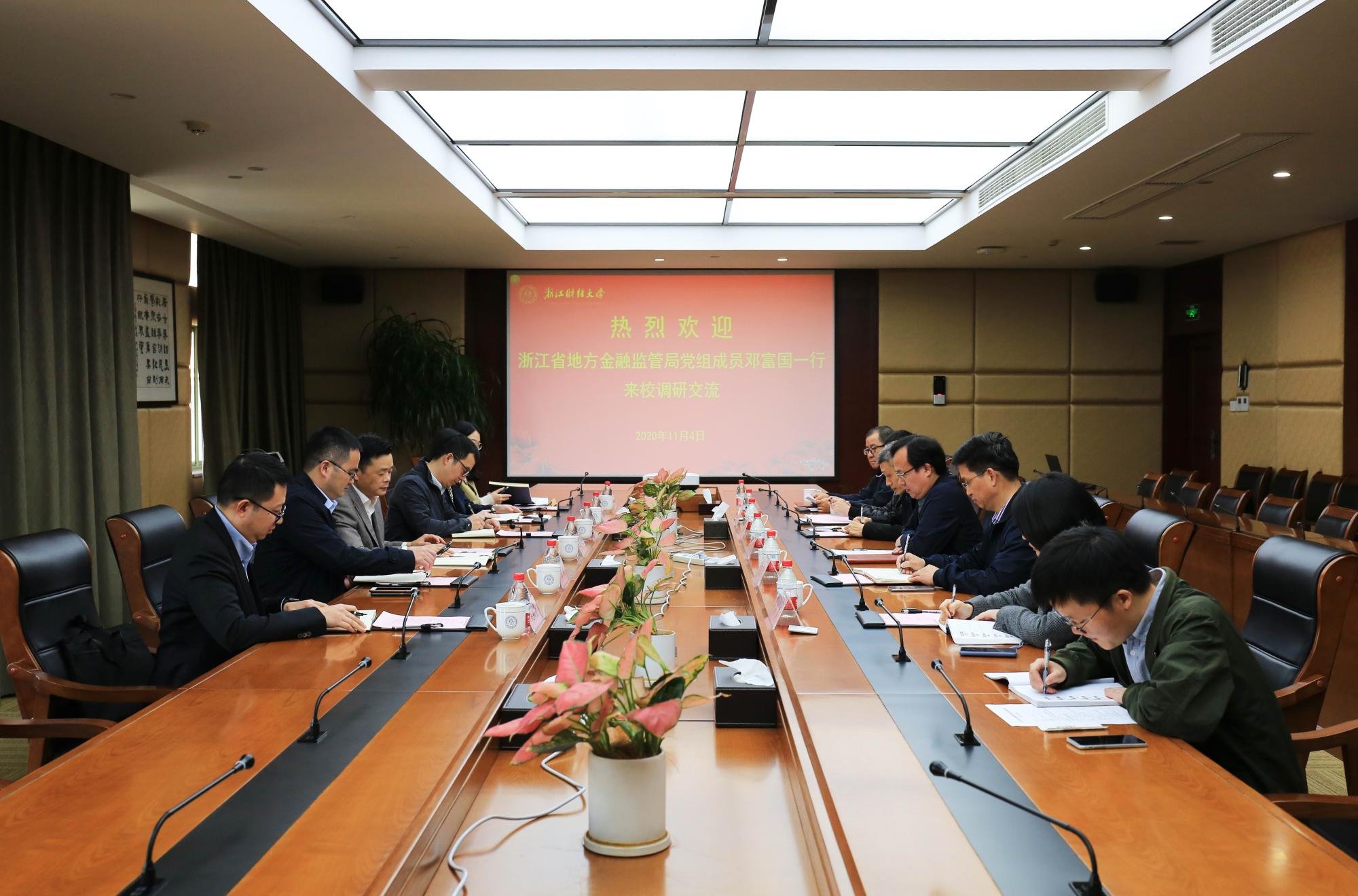 本网讯 11月4日,省地方金融监管局党组成员邓富国一行来校调研。校党委书记李金昌会见了邓富国一行。校党委副书记黄建新主持调研交流会,校党委委员、组织部部长董进才参加交流会。