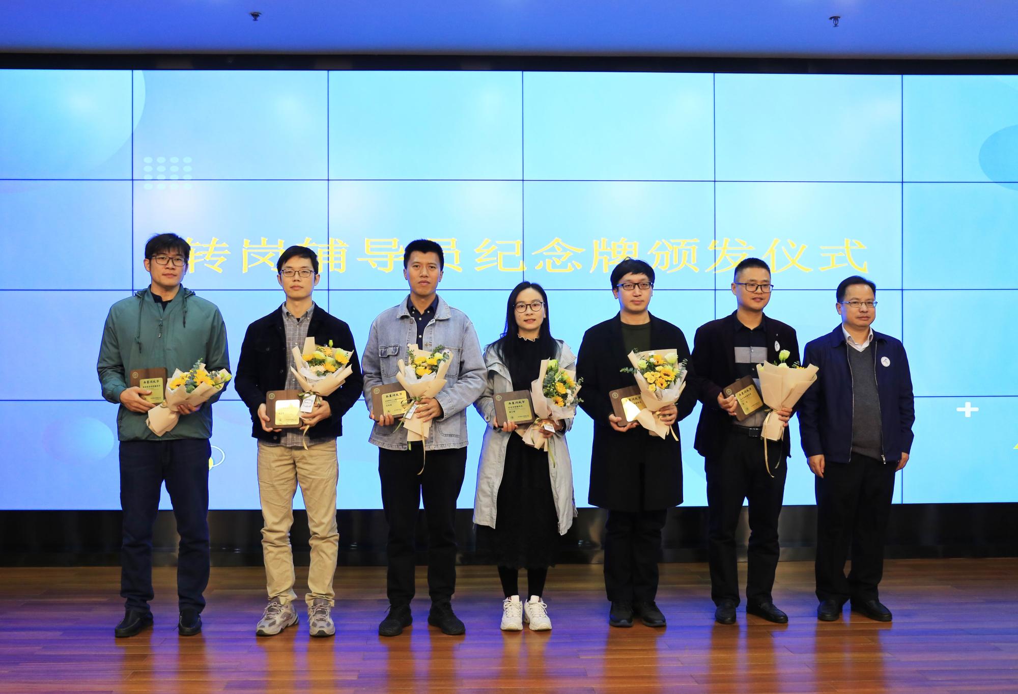 校党委委员、宣传部部长楼胆群为转岗辅导员代表颁发纪念牌