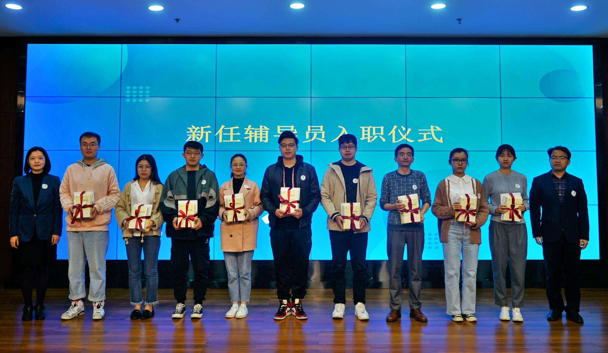 相关职能部门、学院负责人为新入职辅导员颁发校徽和学习资料