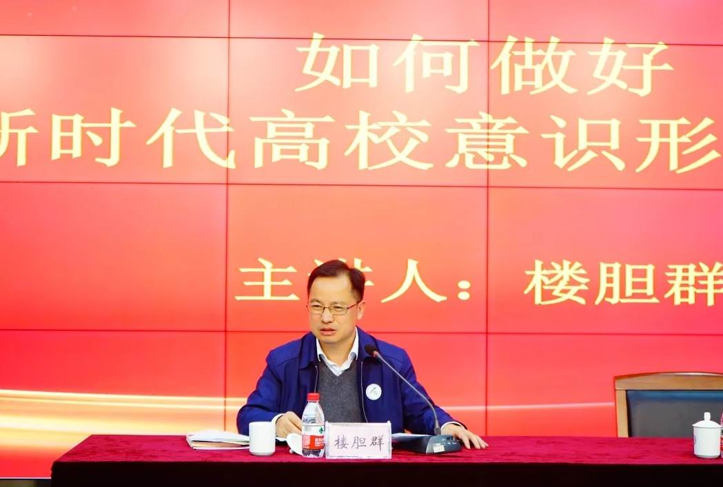 入职仪式结束后,2020年辅导员培训营第一讲开讲,楼胆群为全体辅导员讲授题为《如何做好新时代高校意识形态工作》的专题讲座。