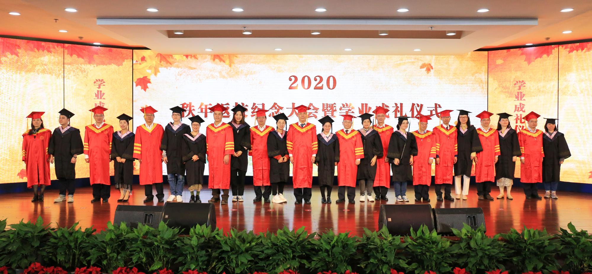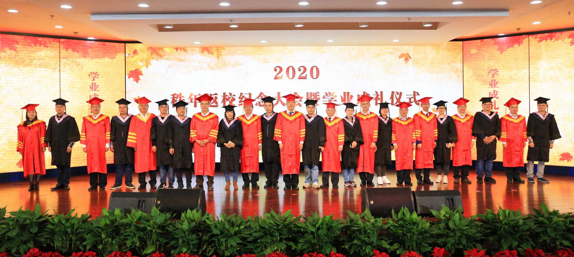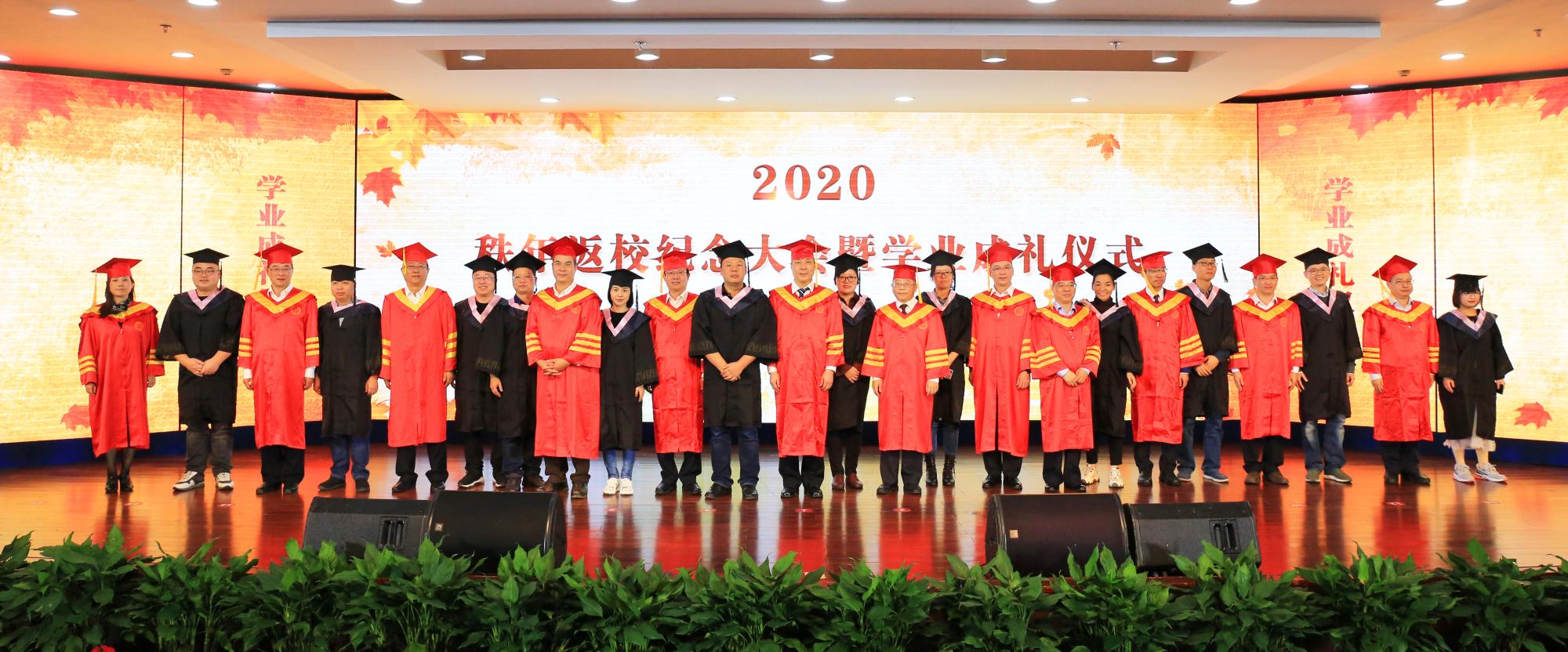 活动现场还举行了学业成礼仪式。全体与会校领导为1980届、1990届、2000届、2010届校友拨穗,校友们身着学业成礼服, 与母校老师合影留念,重温青春岁月。