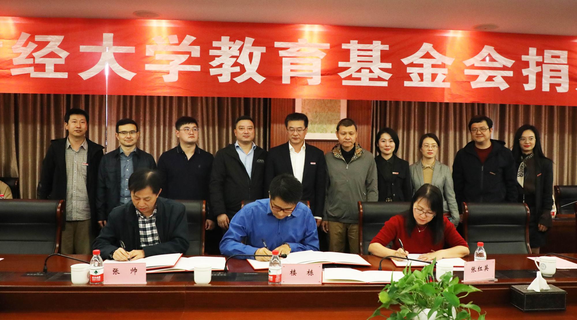捐赠签约仪式上,徐晓东为楼栋校友颁发了捐赠证书和纪念杯。社会合作办、校友办主任张红英,信智学院院长张帅和楼栋校友共同签署了捐赠协议。