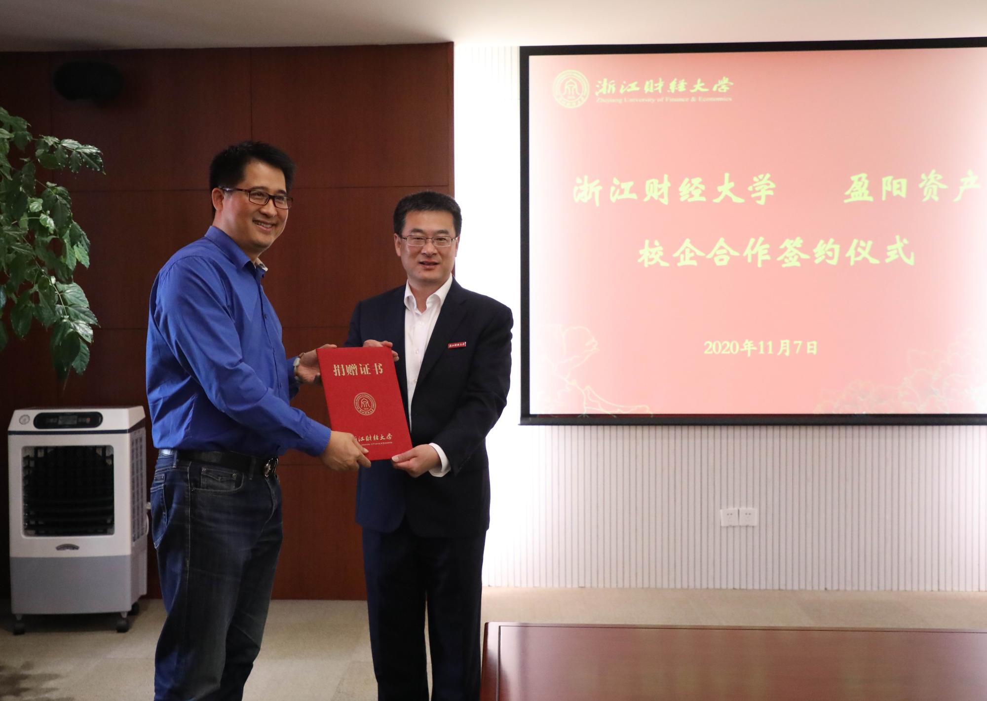 本网讯 11月7日,学校与浙江盈阳资产管理股份有限公司举行校企合作项目签约仪式。盈阳资产创始人楼栋校友、管理层孔繁岗校友、赵海滨先生,校友总会副会长兼秘书长、副校长徐晓东等出席仪式。