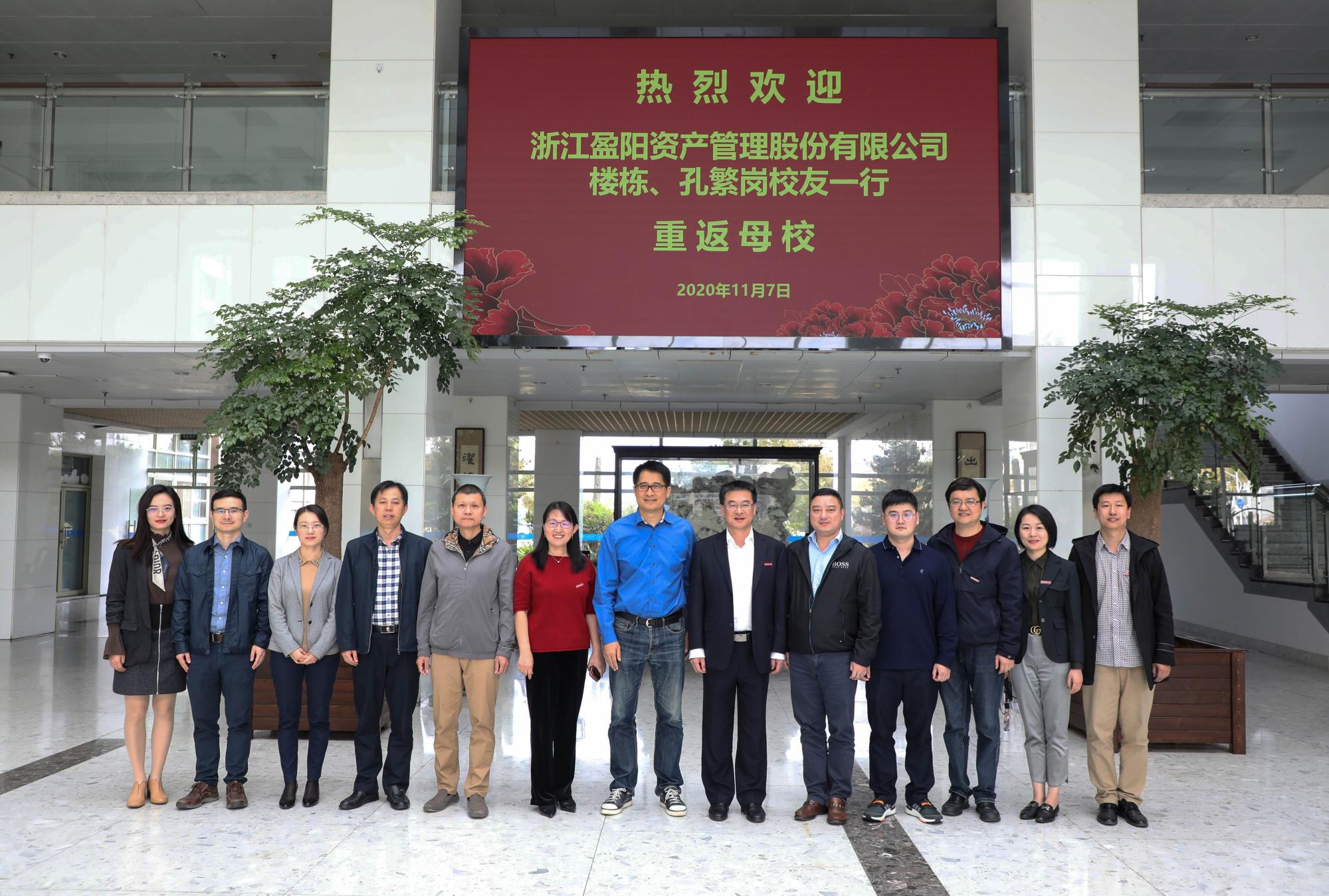 徐晓东对楼栋校友一行的到来表示欢迎,对盈阳资产长期以来对母校事业发展的关心支持表示感谢。他指出,盈阳资产在前期设立“明栋基金”“盈阳基金”等基础上,再次捐赠100万元用于校企项目建设,楼栋等校友所给予的不仅是资金上的支持,更多的是精神上的鼓舞。希望今后进一步充分发挥校企双方优势,加强产学研合作,加快科研成果转化,实现优势互补、资源共享、合作共赢。