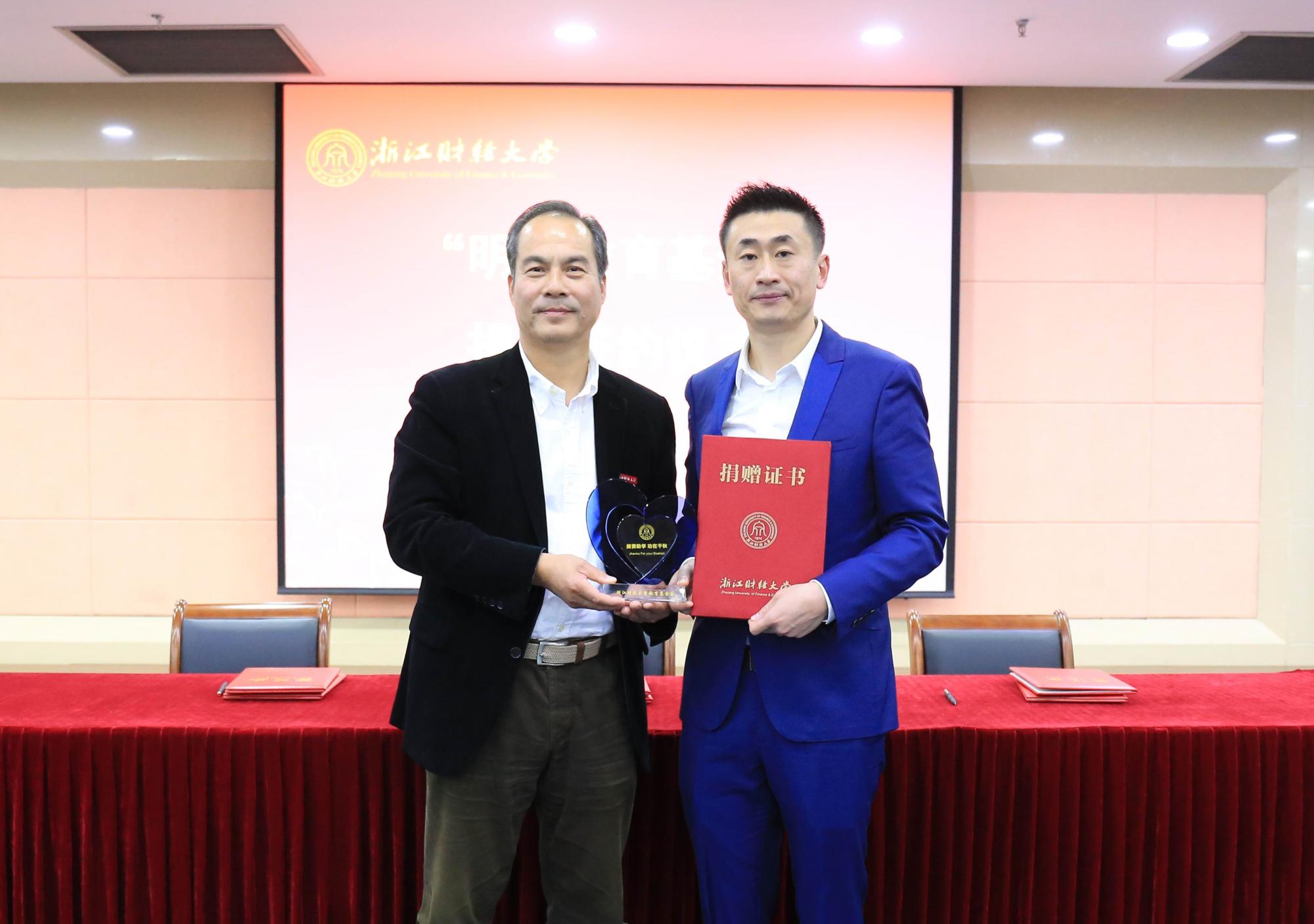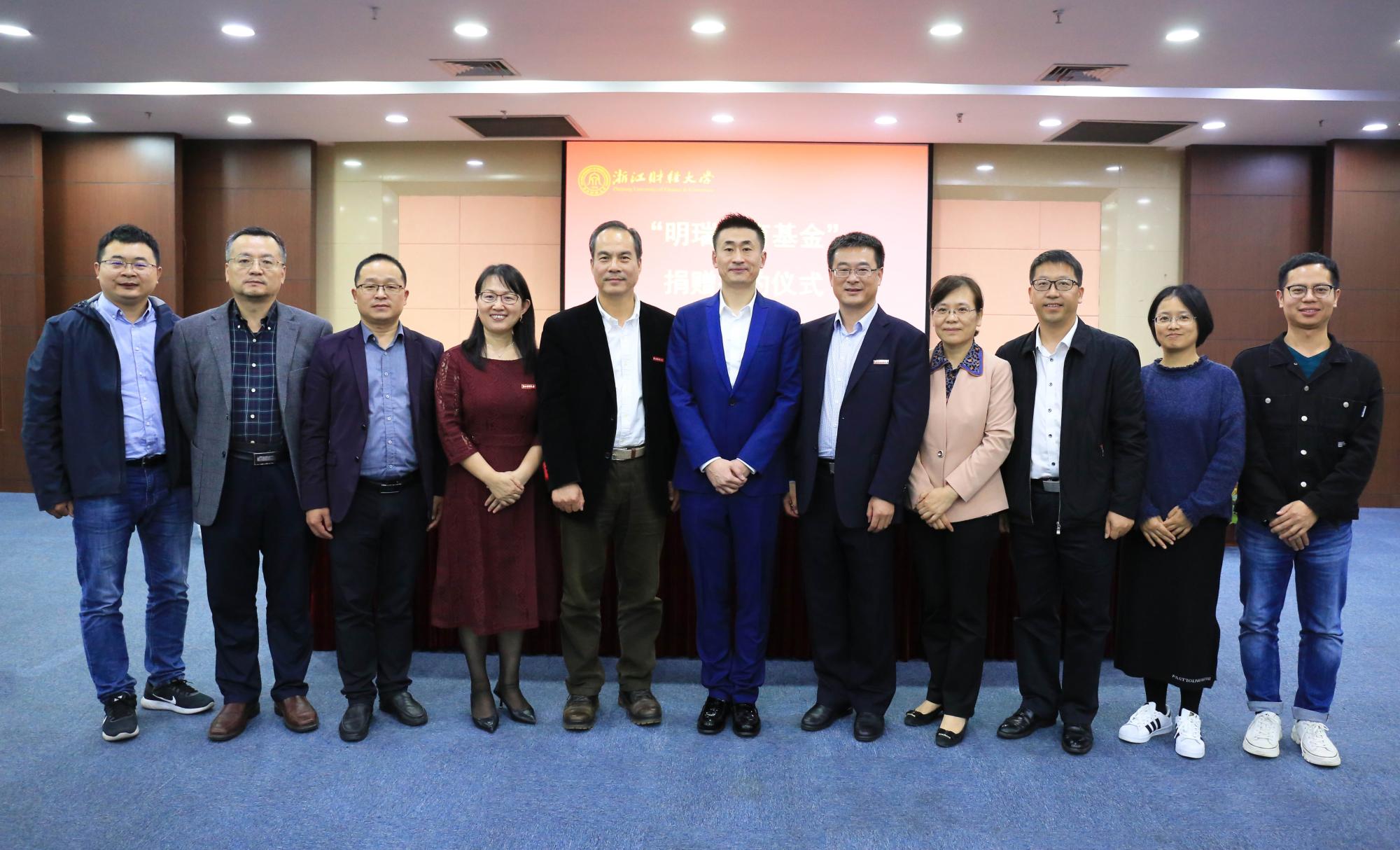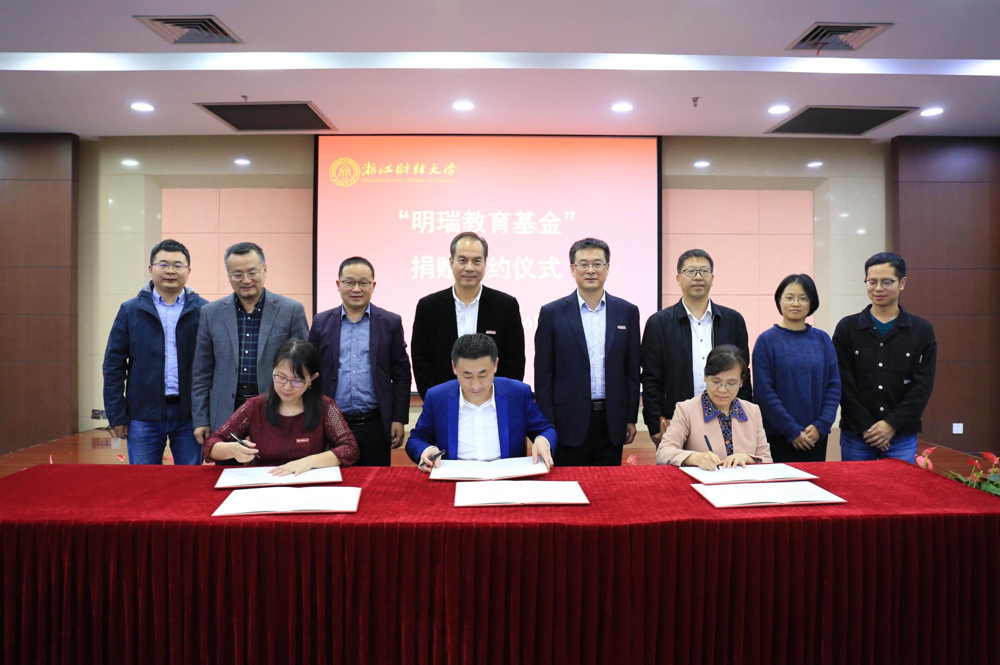 本网讯 11月6日,明瑞教育基金捐赠签约仪式在我校下沙校区举行。校友总会副会长、副校长王奎泉,校友总会副会长兼秘书长、副校长徐晓东,四川匠铸文化艺术品有限责任公司创始人李宇先生等出席签约仪式。