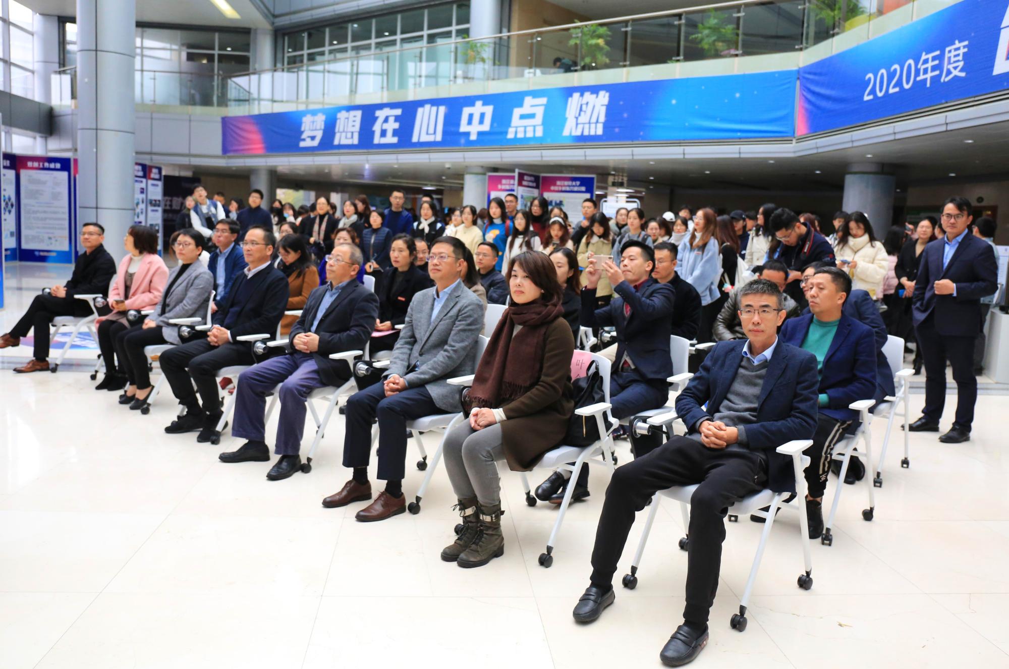 本网讯 11月24日,学校首届创新创业教育活动月暨2021年创新创业与职业规划大赛启动仪式在下沙校区举行。校长钟晓敏、党委副书记余建森、杭州市就业服务管理中心副主任叶蔚华、钱塘新区大创小镇管委会副主任沈丹凤、时代浙商金融研究院院长沈松华、超校联盟董事长寿虎等出席启动仪式。