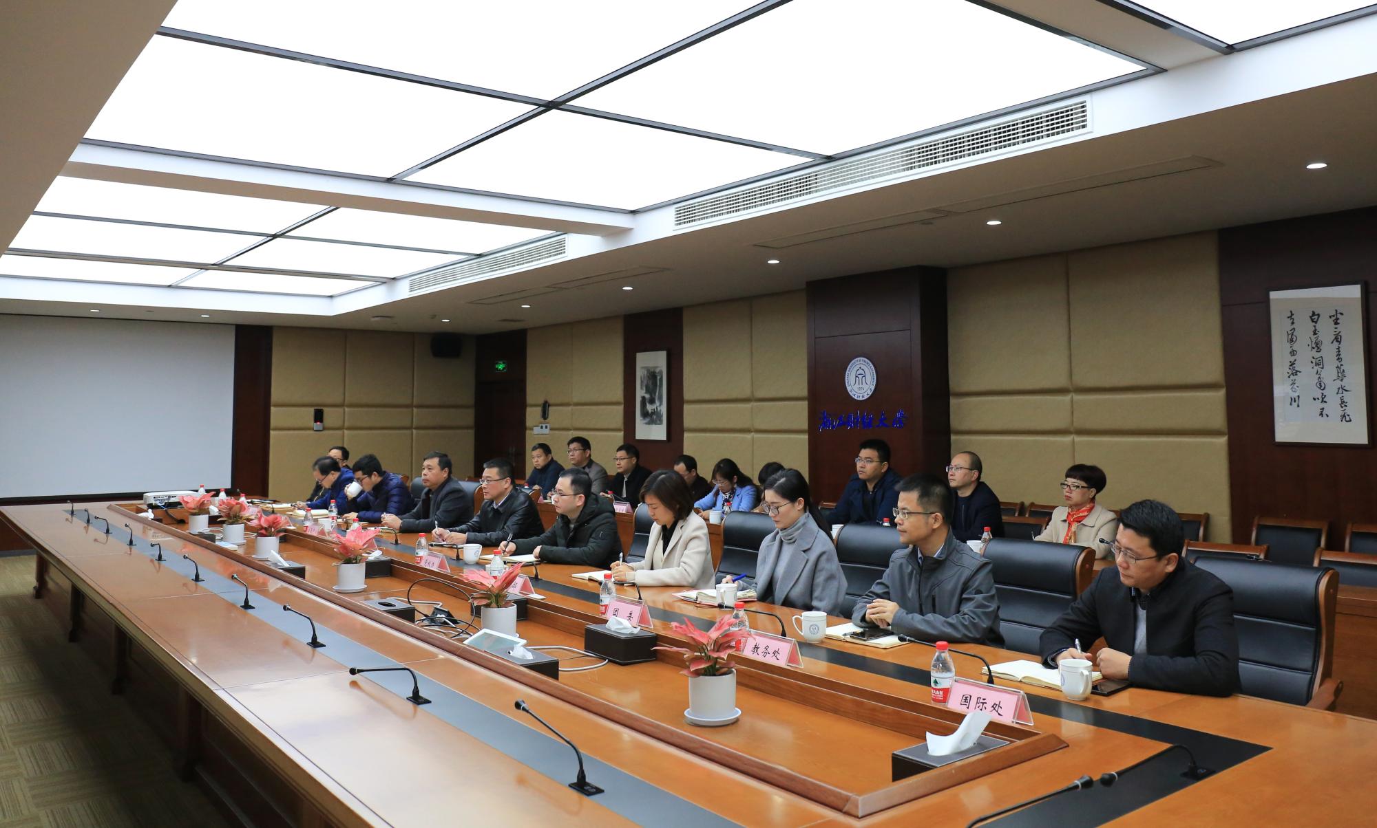 党校办、宣传部、学生处、校团委、人事处、教务处、研究生院、国际处、保卫处、资产处、后勤中心、文管办、国际学院、继教学院、信息办、资产公司、东方学院、紫元公司负责人参加会议。