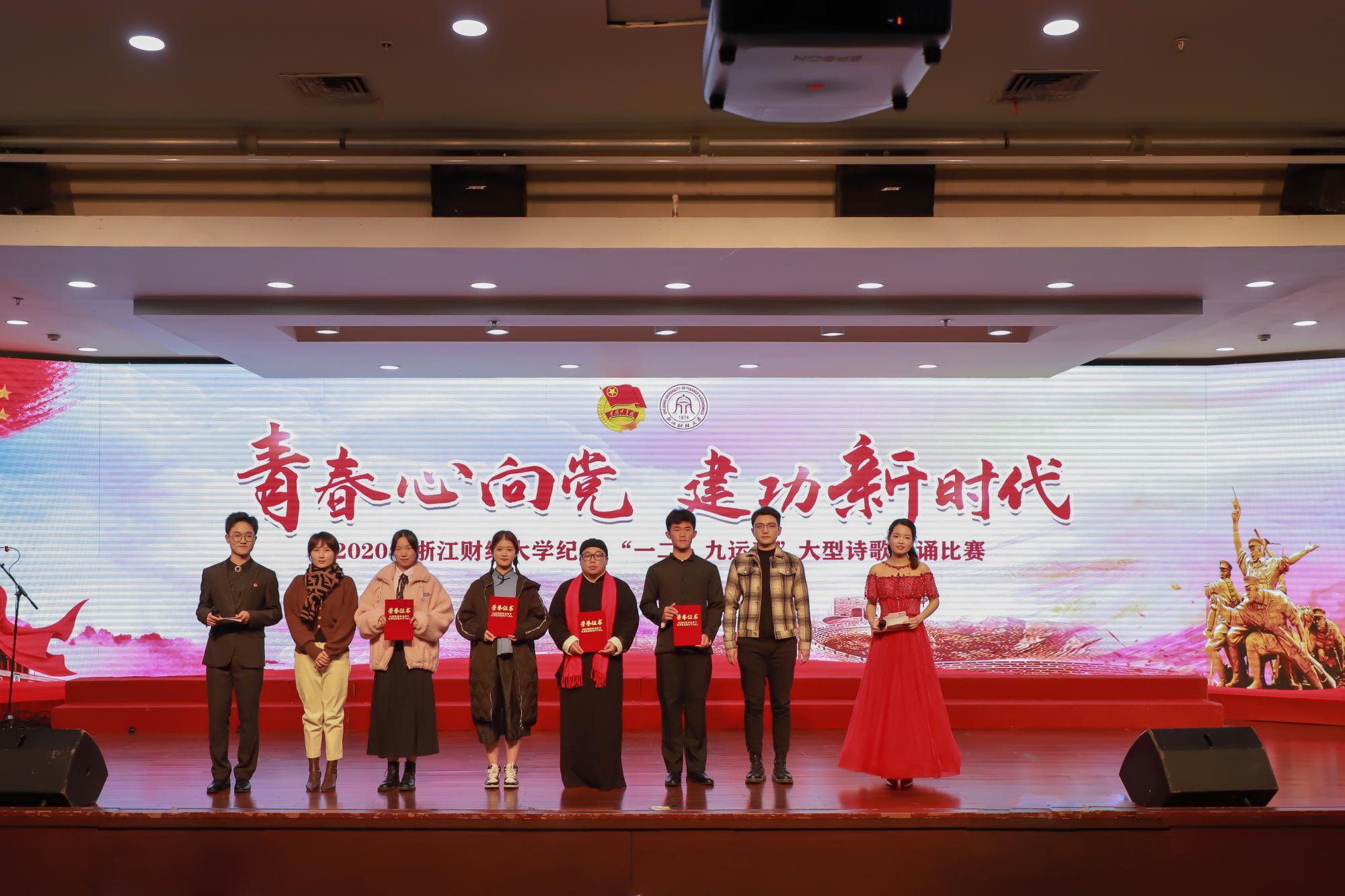 本网讯 为迎接学校第二次党代会召开,纪念“一二·九”运动85周年,12月8日,“青春心向党,建功新时代”纪念“一二·九”运动诗歌朗诵比赛在我校下沙校区举行。校党委副书记余建森、相关职能部门负责人和师生代表300余人等共同观看了比赛。