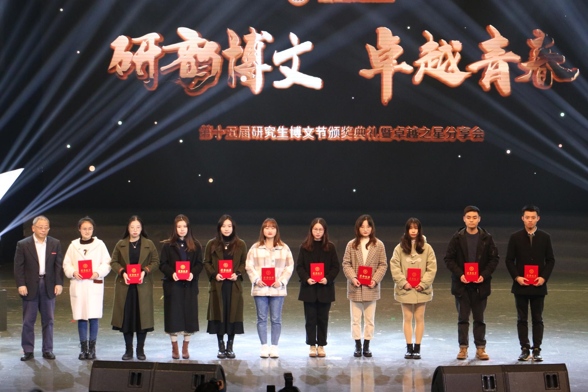 颁奖典礼上,校领导为第十五届研究生“博文节”系列活动获奖代表颁奖。